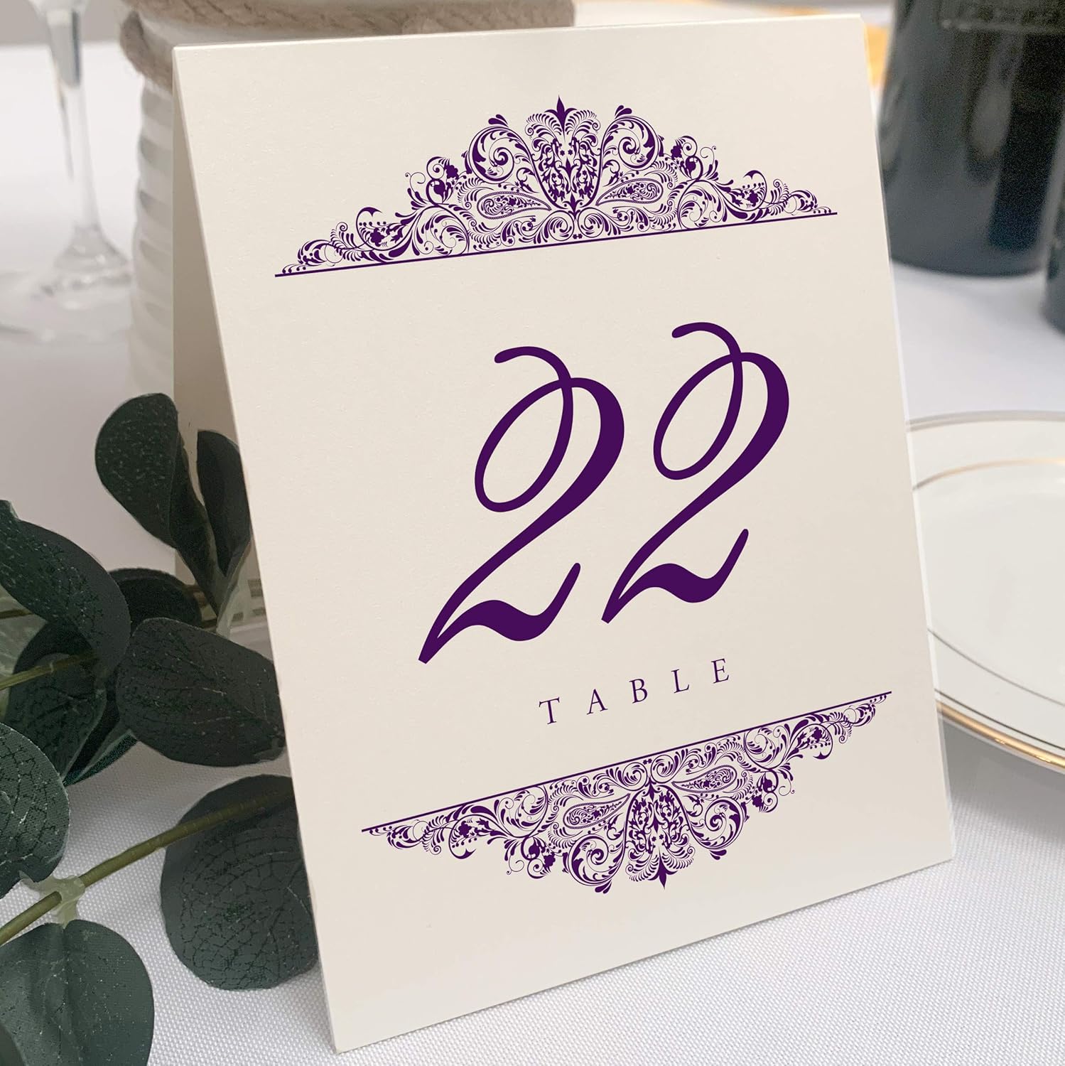 Paisley Wedding Table Numbers (Select Color/Quantity), Champagne, Eggplant, 1-15, Double Sided, Tent or Use in a Stand, Great for Parties & Restaurants - Made in the USA