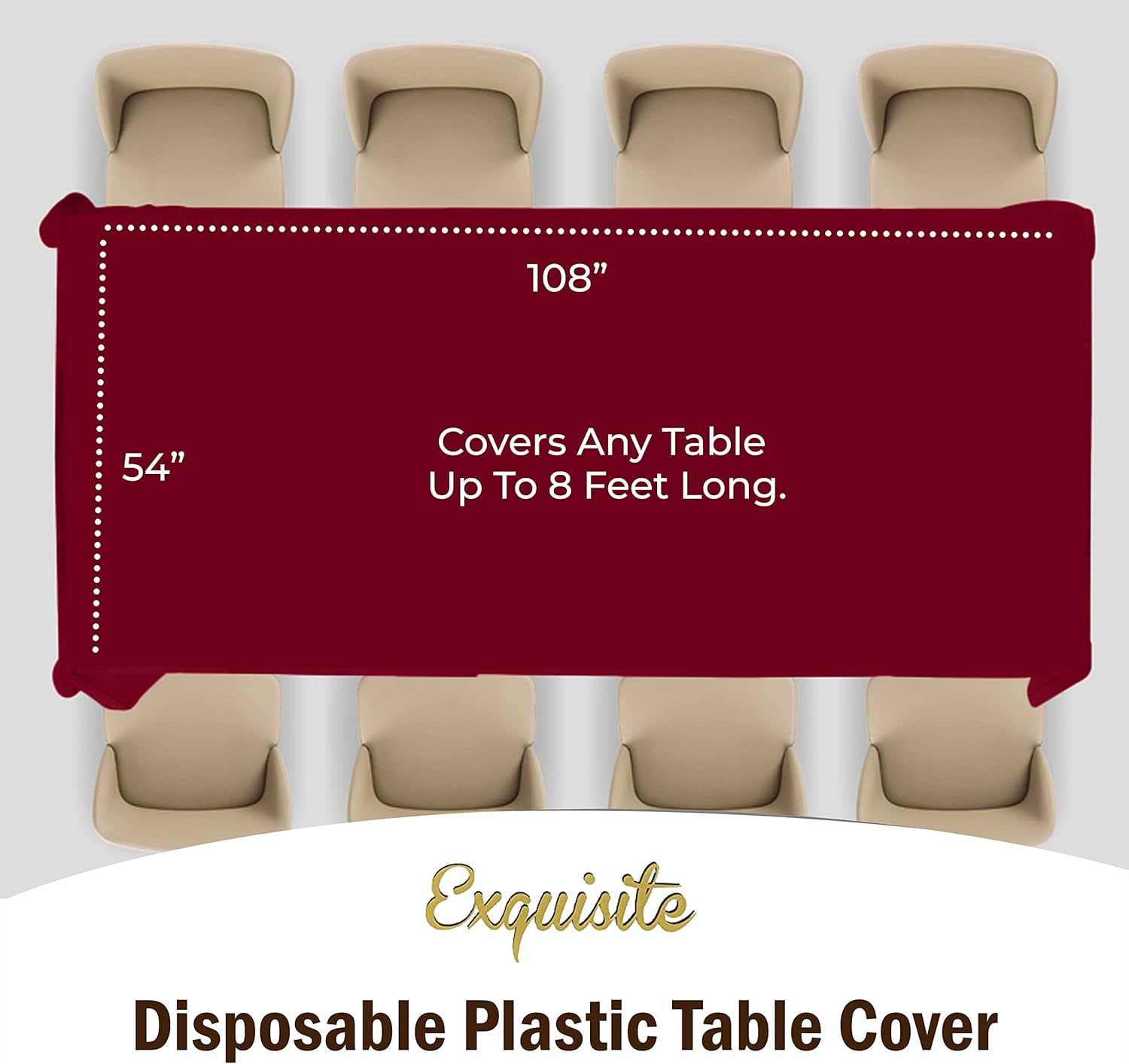 - PREMIUM QUALITY PROTECTION: This 12 pack of 54 in. x 108 in. Rectangle Burgundy plastic tablecloths will cover any table up to 8 feet. Unlike your typical paper table clothes these disposable table covers for parties are spill and waterproof!!!