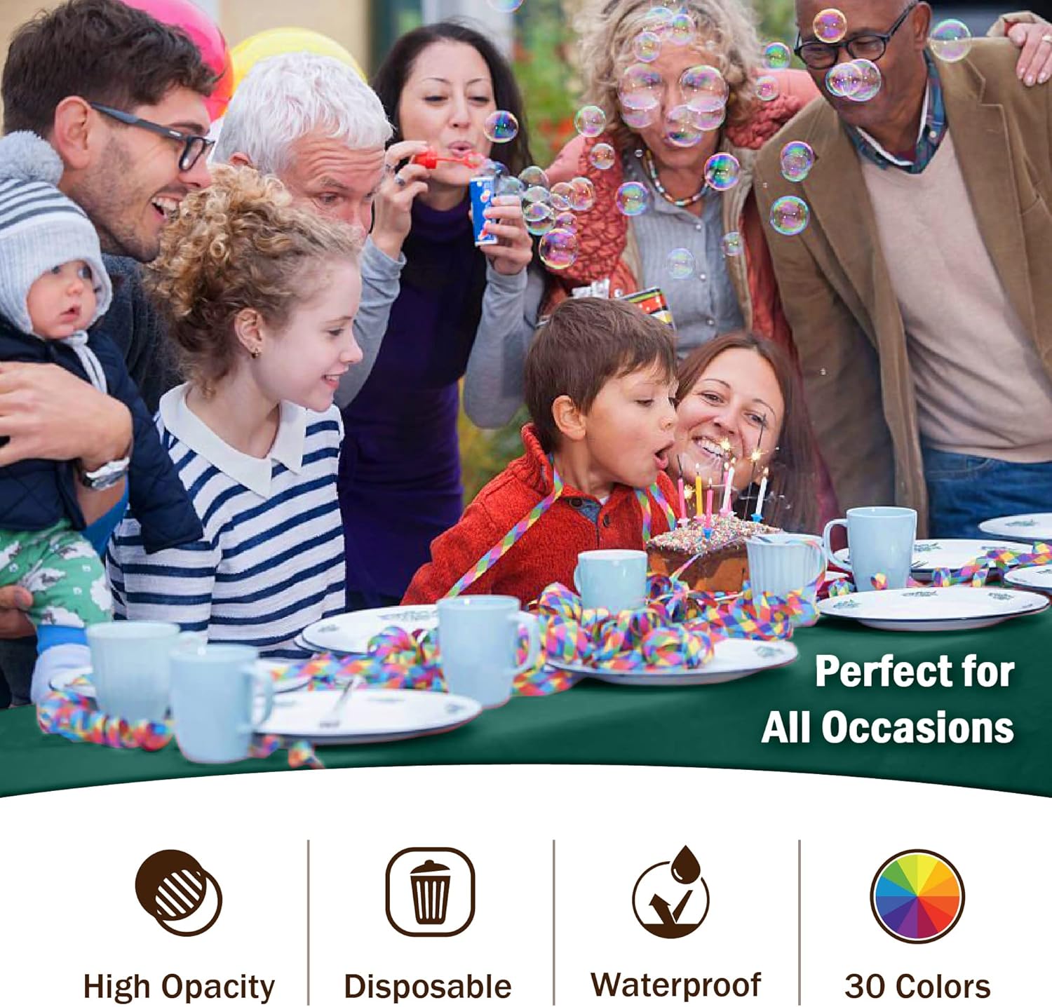 - HIGH OPACITY: covers any table with minimal transparency. Great plastic tablecoth for parties, weddings, holdiay party, , birthday parties, christmas, thanksgiving dinner, bbq, and any other color themed event.