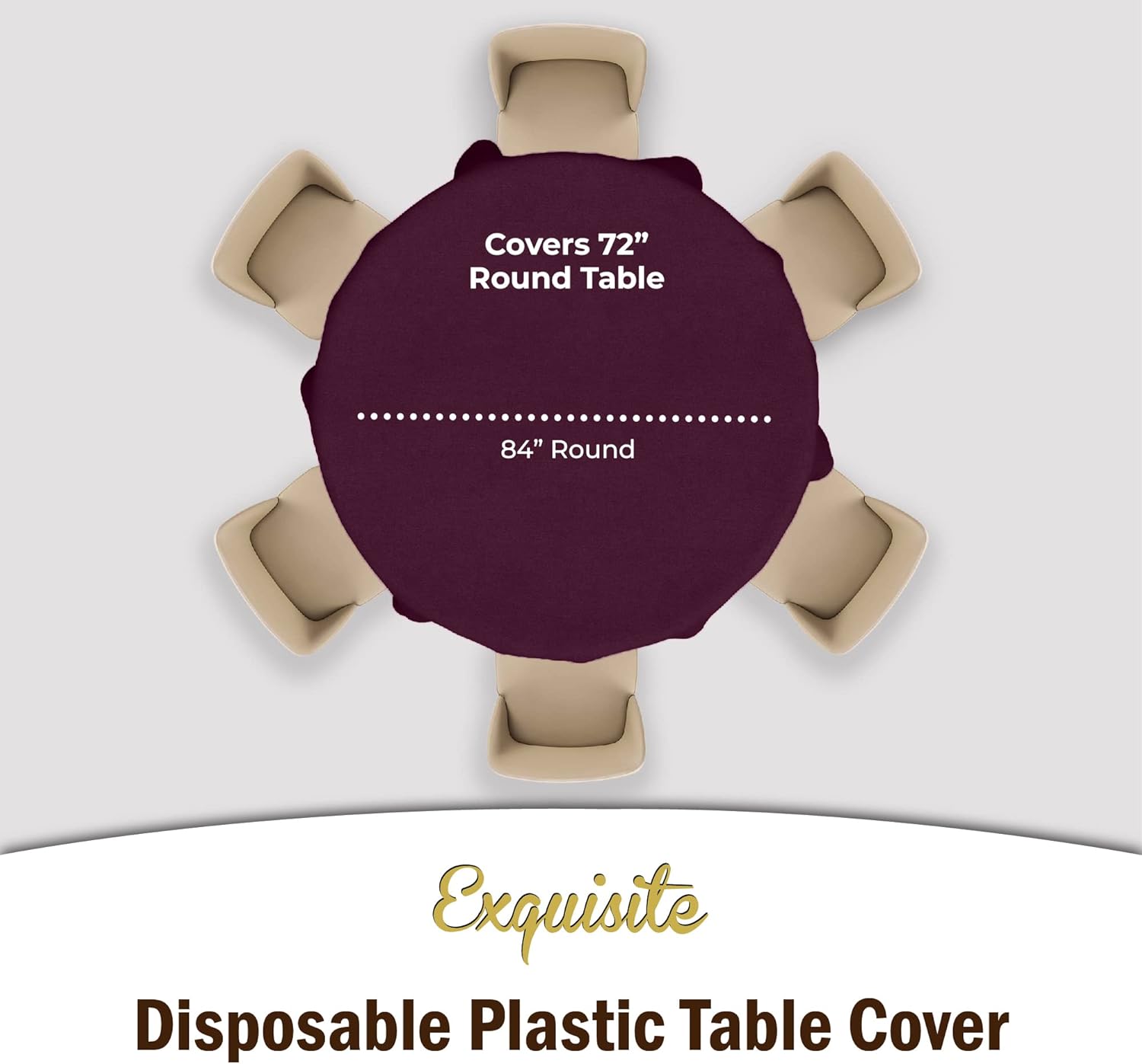 - PREMIUM QUALITY PROTECTION: This 12 pack of 84 in. Plum Round plastic tablecloths will cover any table up to 7 feet. Unlike your typical paper table clothes these disposable table covers for parties are spill and waterproof!!!
