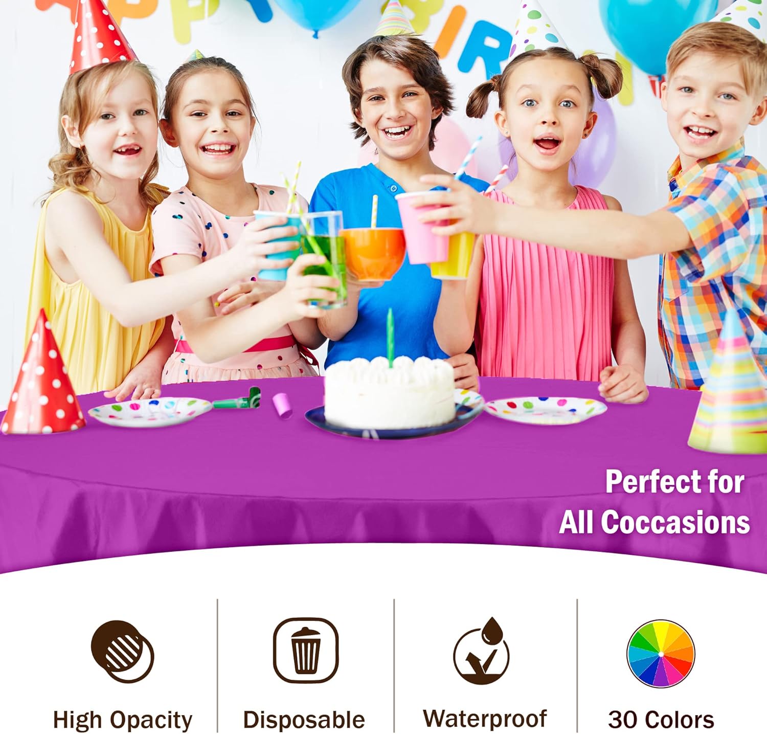 Exquisite 12-Pack Premium Plastic Tablecloth 84in. Round Table Cover - Magenta