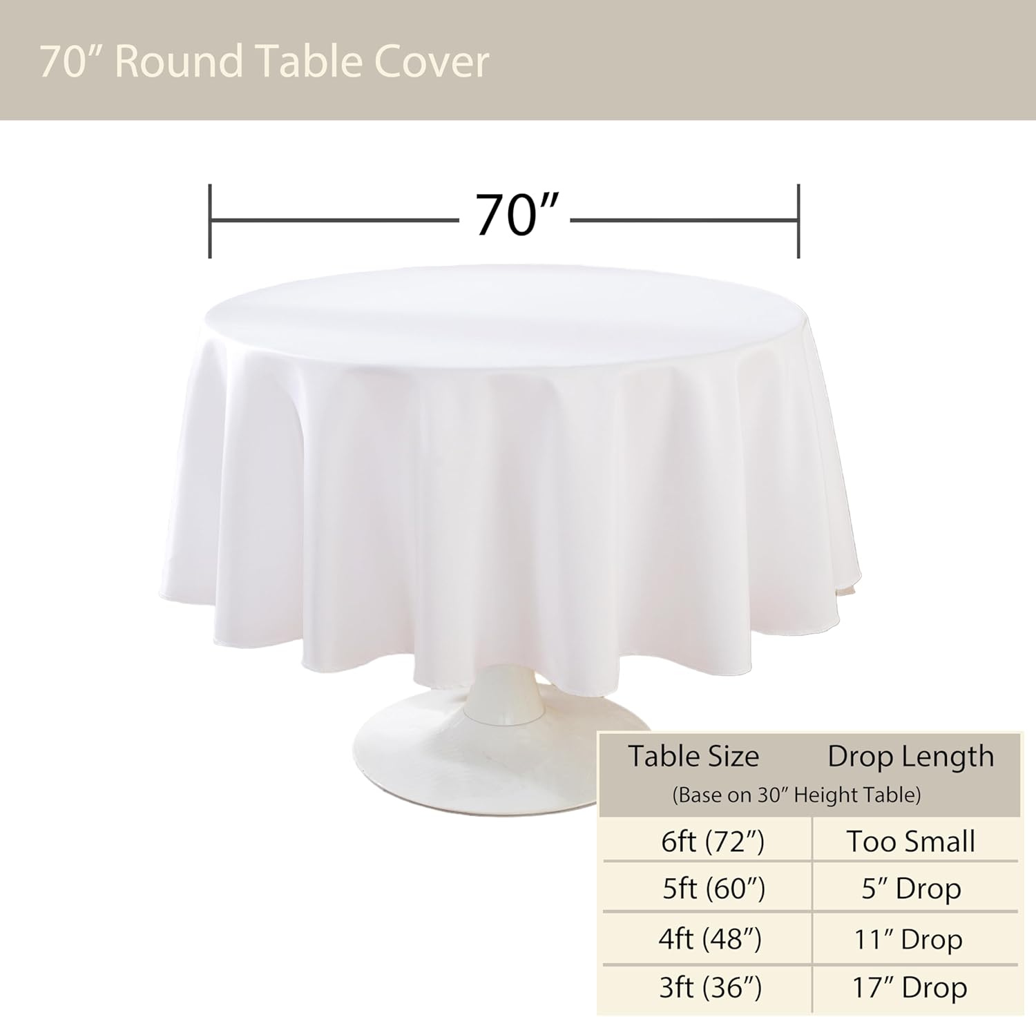 Craft And Party Round Tablecloth, 70 Inch White Tablecloth, Polyester Fabric Washable Table Cloth for Home, Party, Wedding or Restaurant Use.