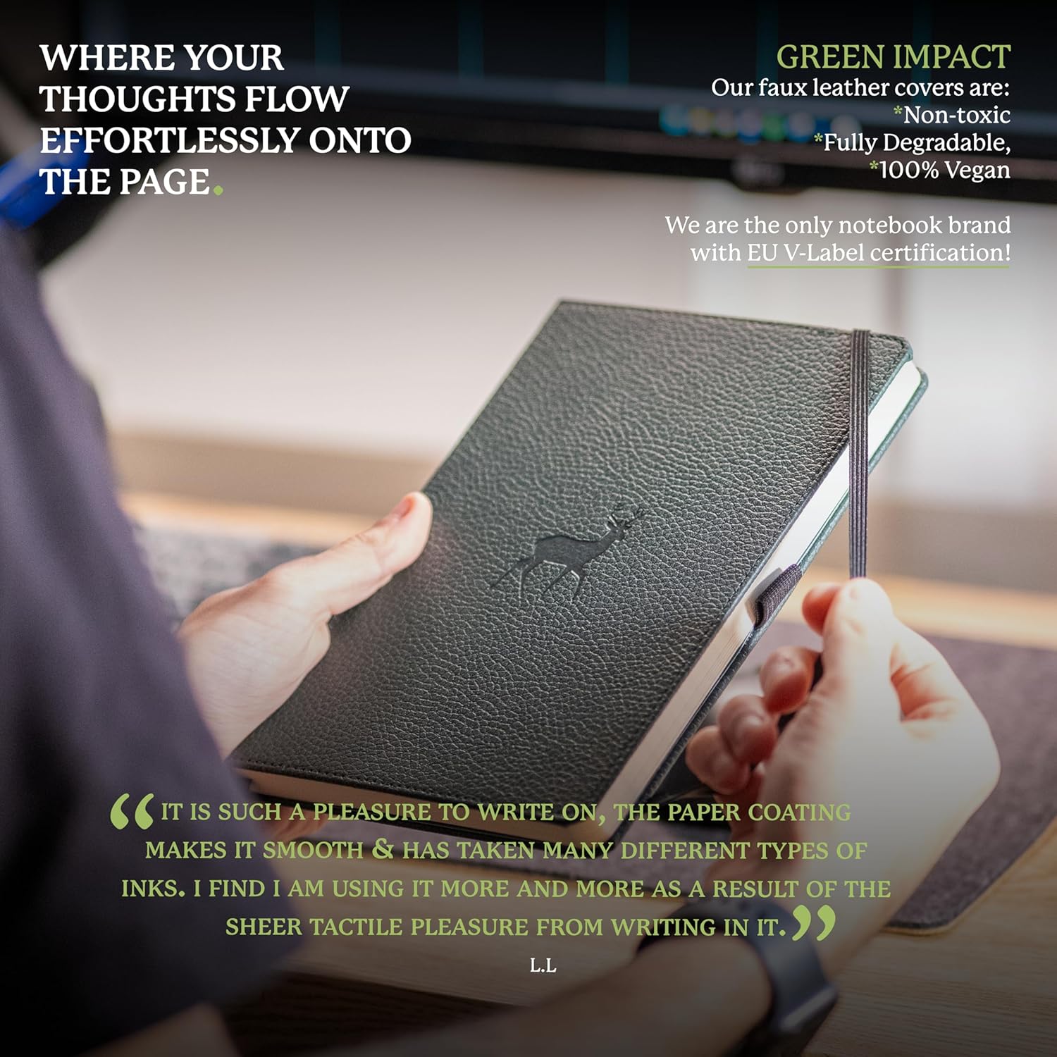 - HIGHEST-QUALITY WRITING PAPER: Dingbats Green Deer Medium A5 Notebook Journal has 192 pages-96 sheets of no bleed, smooth writing, Cream 100gsm, acid-free fountain-pen friendly, perforated plain paper in a flat lay design