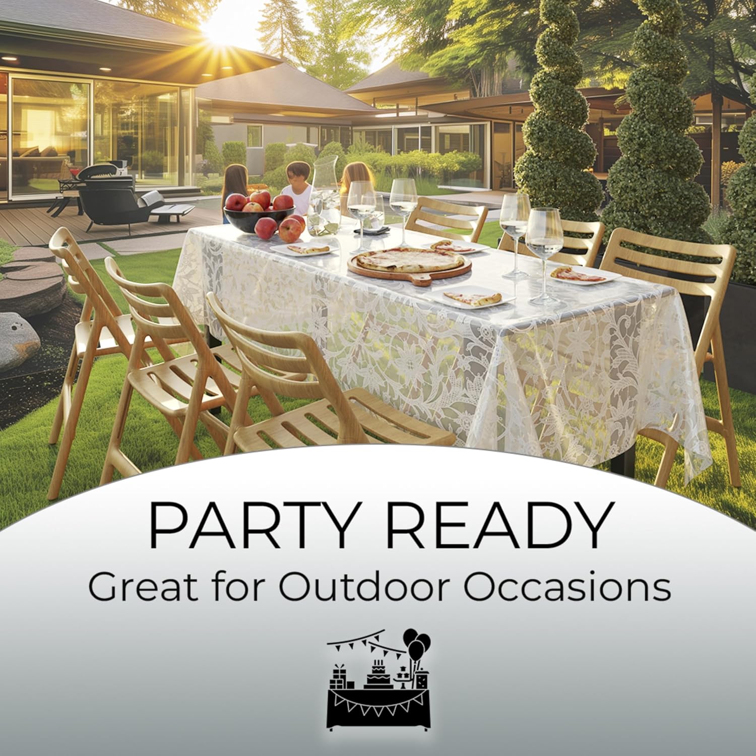 - All Occasions: Whether it's a picnic, party, or holiday gathering, these lace table cloth rectangle table covers are versatile enough for any event. Being the standard size of 8 ft table cloth rectangle table they make a great use as a picnic table cover, outdoor table cover for parties, or elegant outdoor table clothes to elevate any occasion effortlessly.