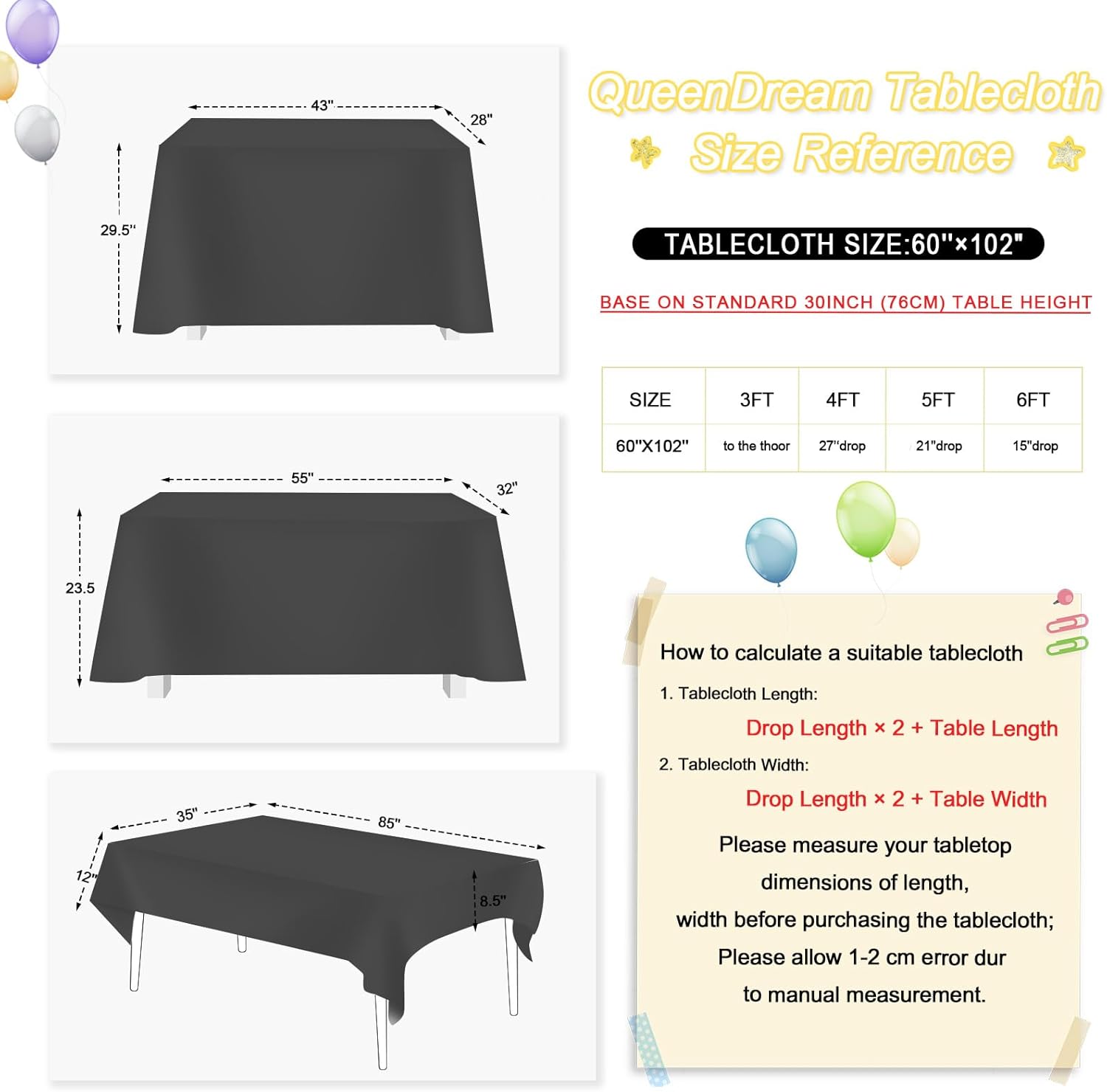 - Material : Polyester black tablecloth