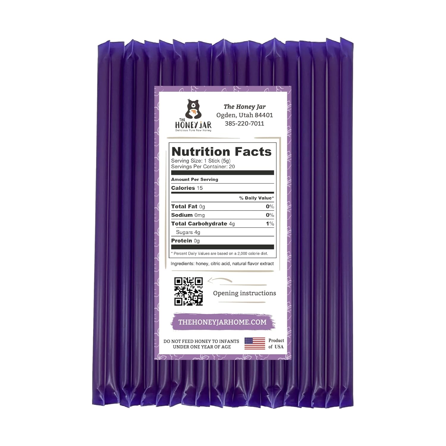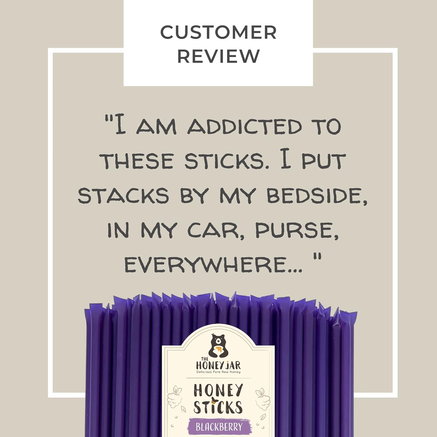 The Honey Jar Blackberry Flavored Honey Sticks - Pure Honey Straws For Tea, Coffee, or a Healthy Treat - One Teaspoon of Flavored Honey Per Stick - Made In The USA with Real Honey - (20 Count)