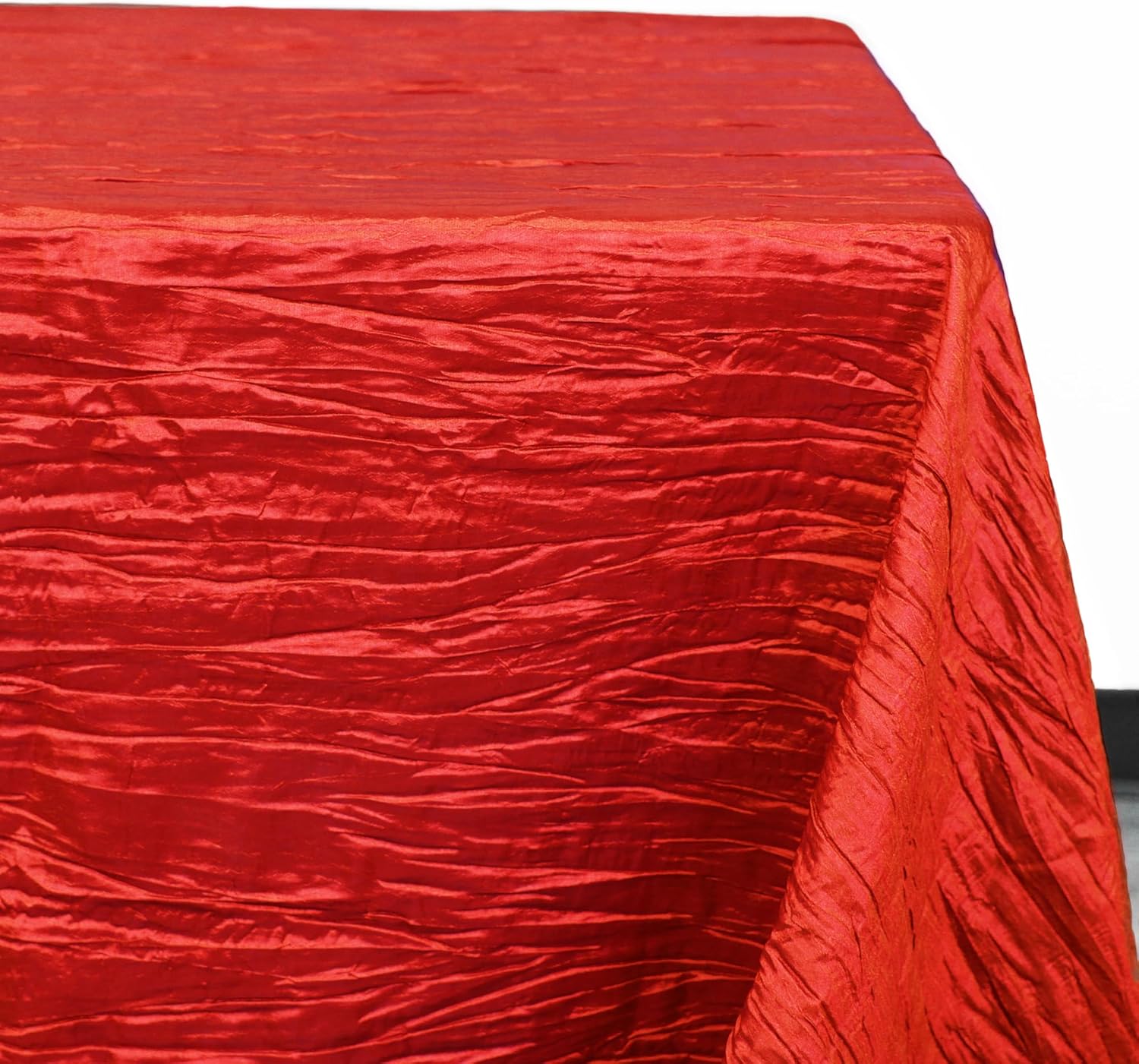 YOUR CHAIR COVERS - 90 x 132 inch Rectangular Crinkle Taffeta Tablecloth - Red, Rectangle Table Linens for 6 ft Rectangular Tables, Wedding Crushed Table Cloth