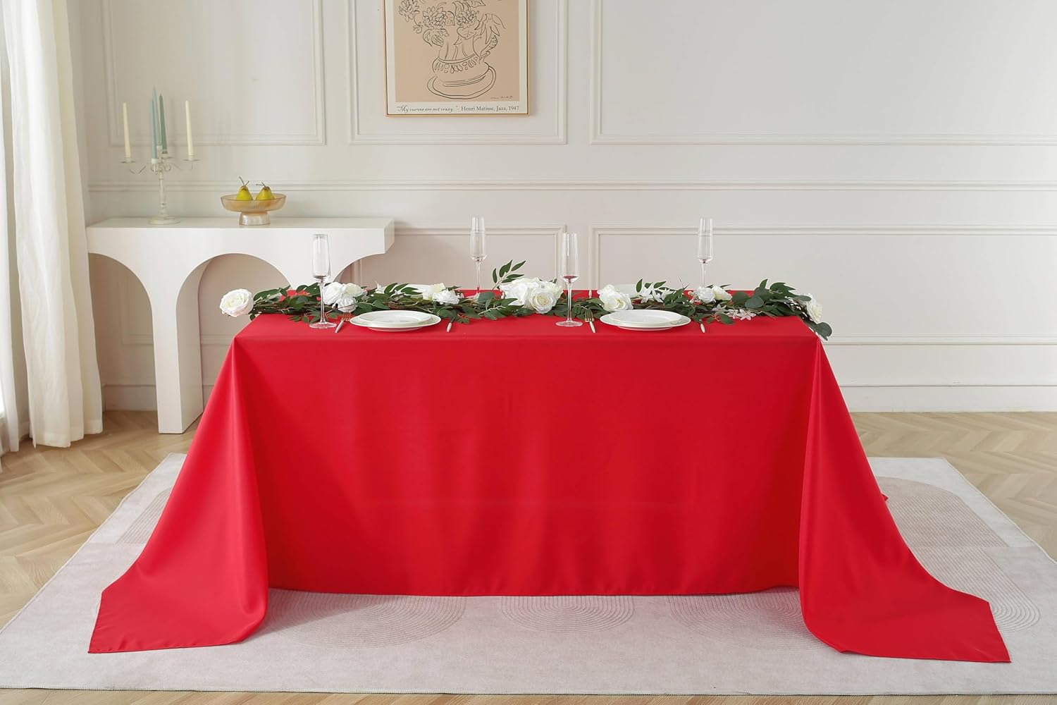 Craft And Party Rectangle Tablecloth, 90 x 132 Inch Red Tablecloth, 8ft Rectangle Table Cloth, Polyester Fabric Washable Tablecloth for Home, Party, Wedding or Restaurant Use.