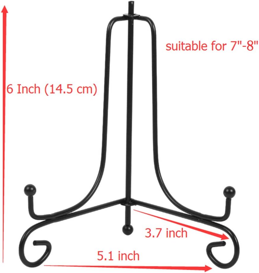 (4 pack)6"Iron Display Stand, Black Iron Easel Plate Display Photo Holder Stand, Displays Picture Frames, Cookbooks, Decorative Plates, Tablets and Art