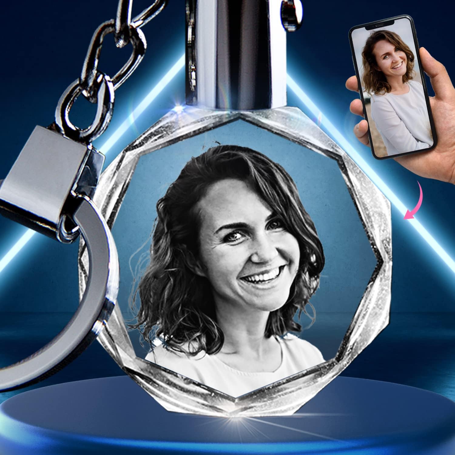 3D innovation Personalized Crystal Keychain Photo with LED Light Custom Laser Etched Key Chain, Valentines Gifts Keepsake