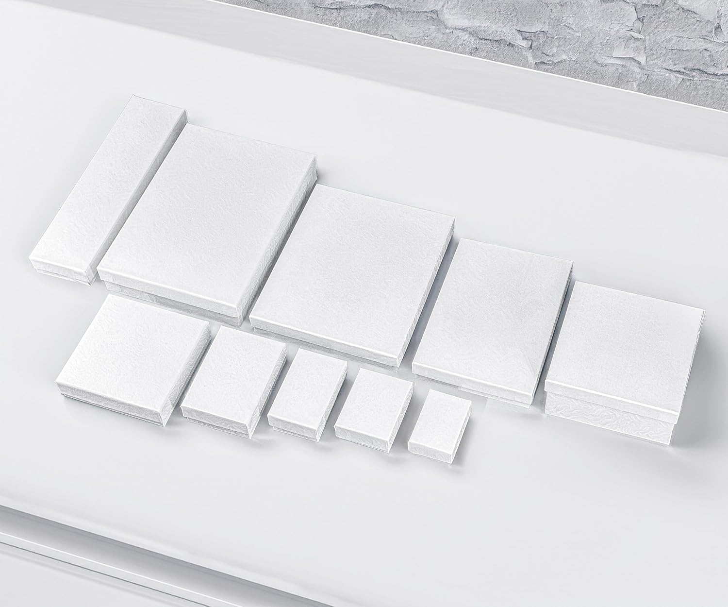TheDisplayGuys - 25-Pack #53 Kraft Paper Cardboard Gift Boxes/Jewelry Cases w. Cotton Padding & Lid - White Swirl - (5.4" x 3.9" x 1.0")