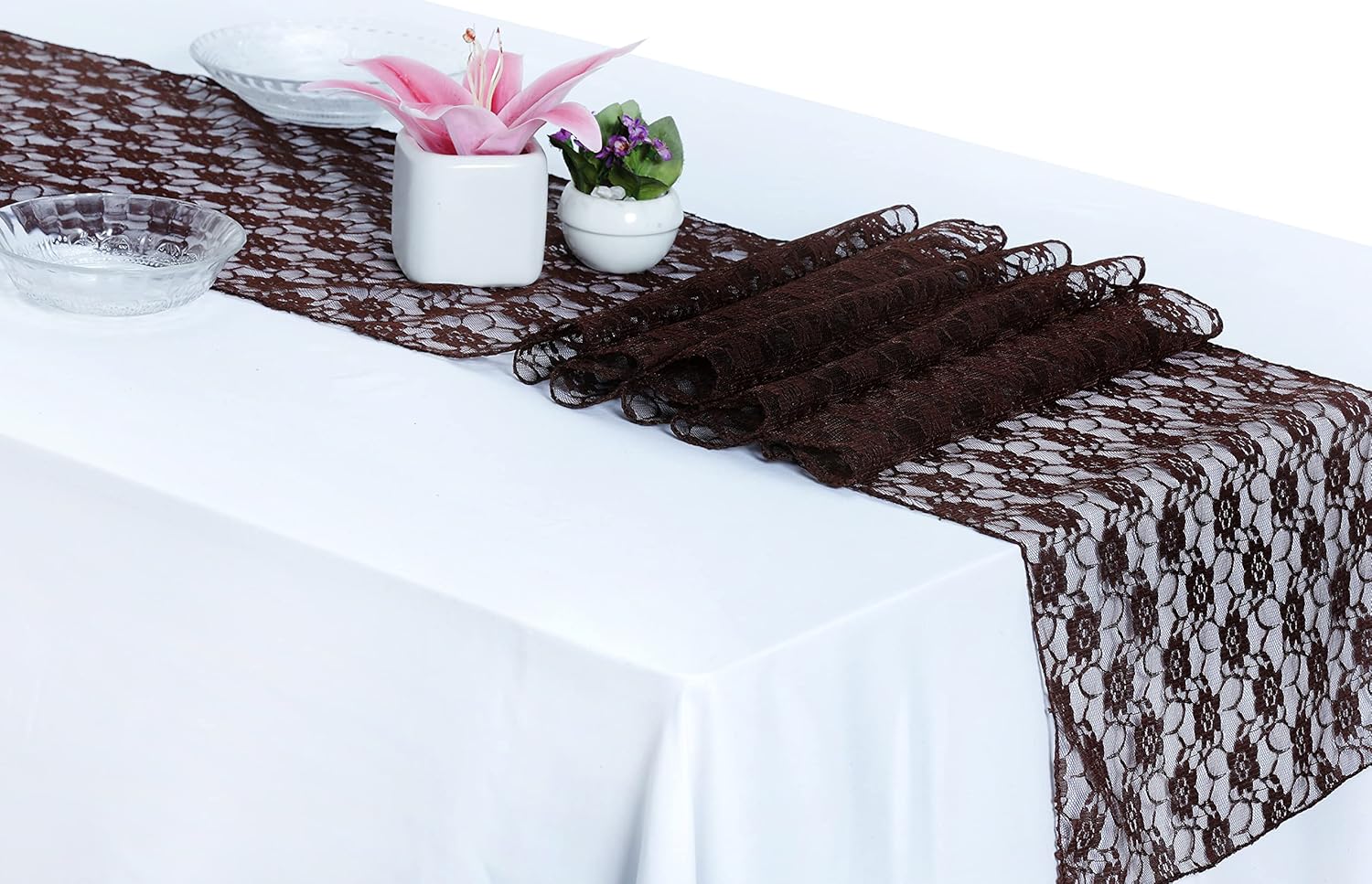 MDS Pack of 20 Wedding 12 x 108 inches Lace Table Runner for Wedding, Decorations for Birthday Parties, Banquets, Graduations, Engagements, and Runners fit Rectangle, Round Table- Coffee