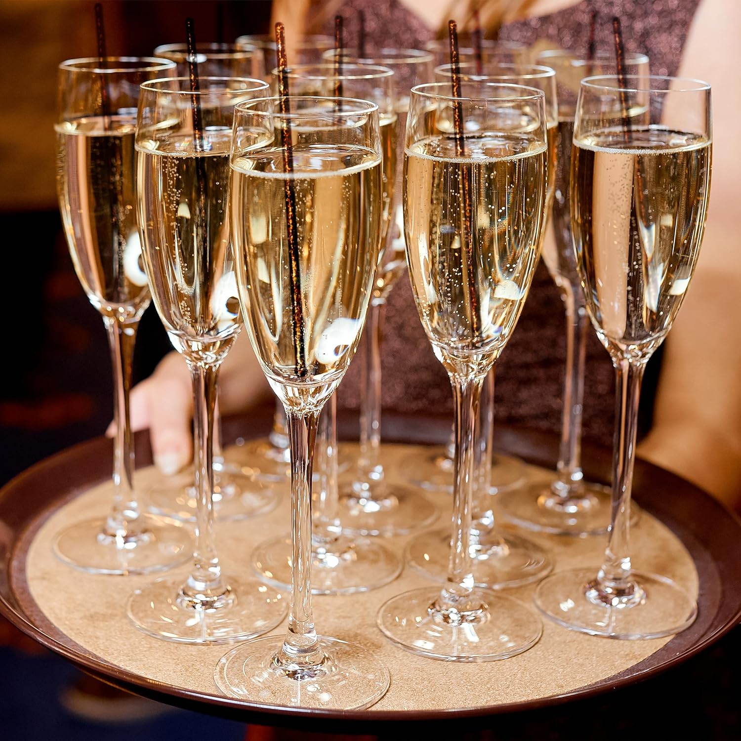 - FUN AND DURABLE 6-inch long, crystal party sticks are made of reusable plastic and are premium quality. Each package includes 100 festive drink mixer sticks molded in pink, gold glitter or clear plastic.