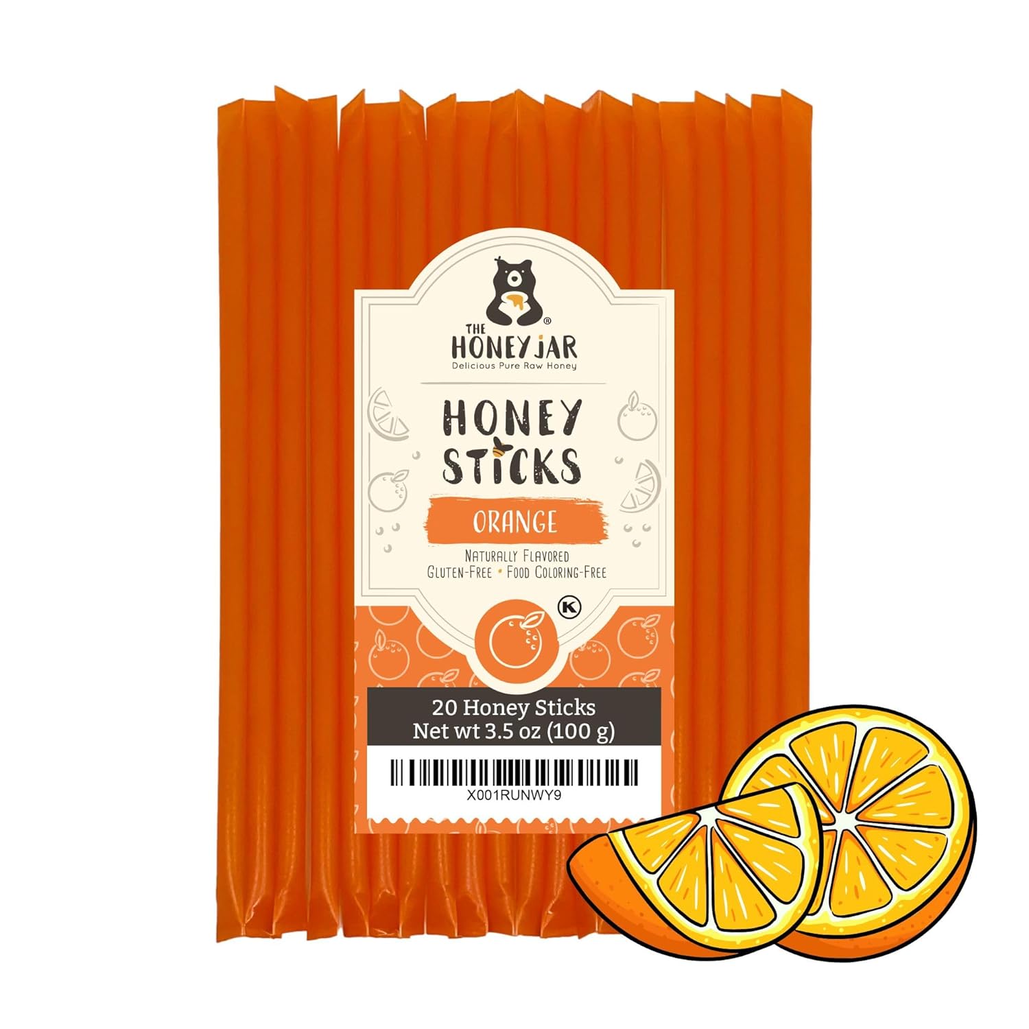 The Honey Jar Orange Flavored Honey Sticks - Pure Honey Straws For Tea, Coffee, or a Healthy Treat - One Teaspoon of Flavored Honey Per Stick - Made In The USA with Real Honey - (20 Count)