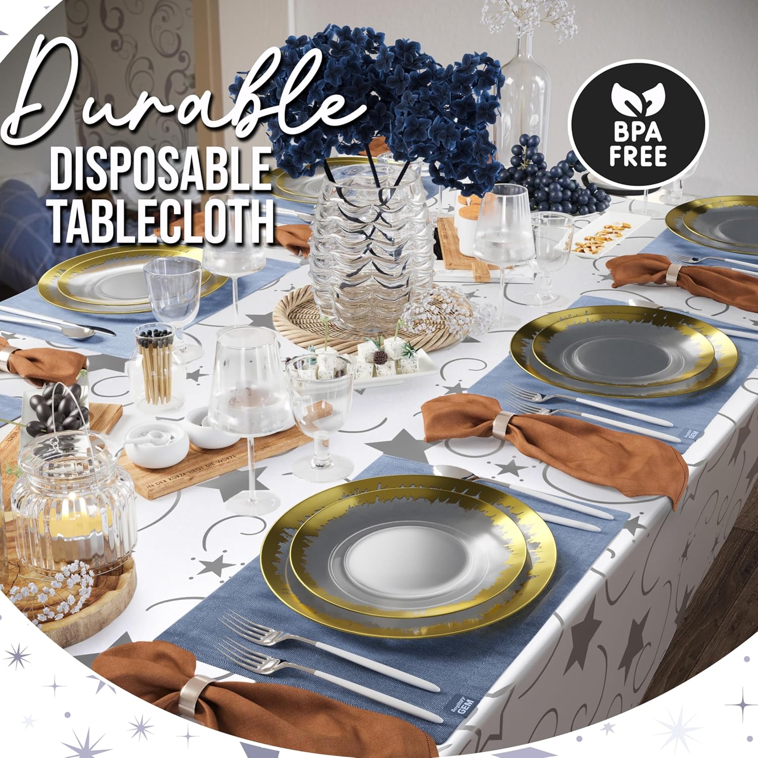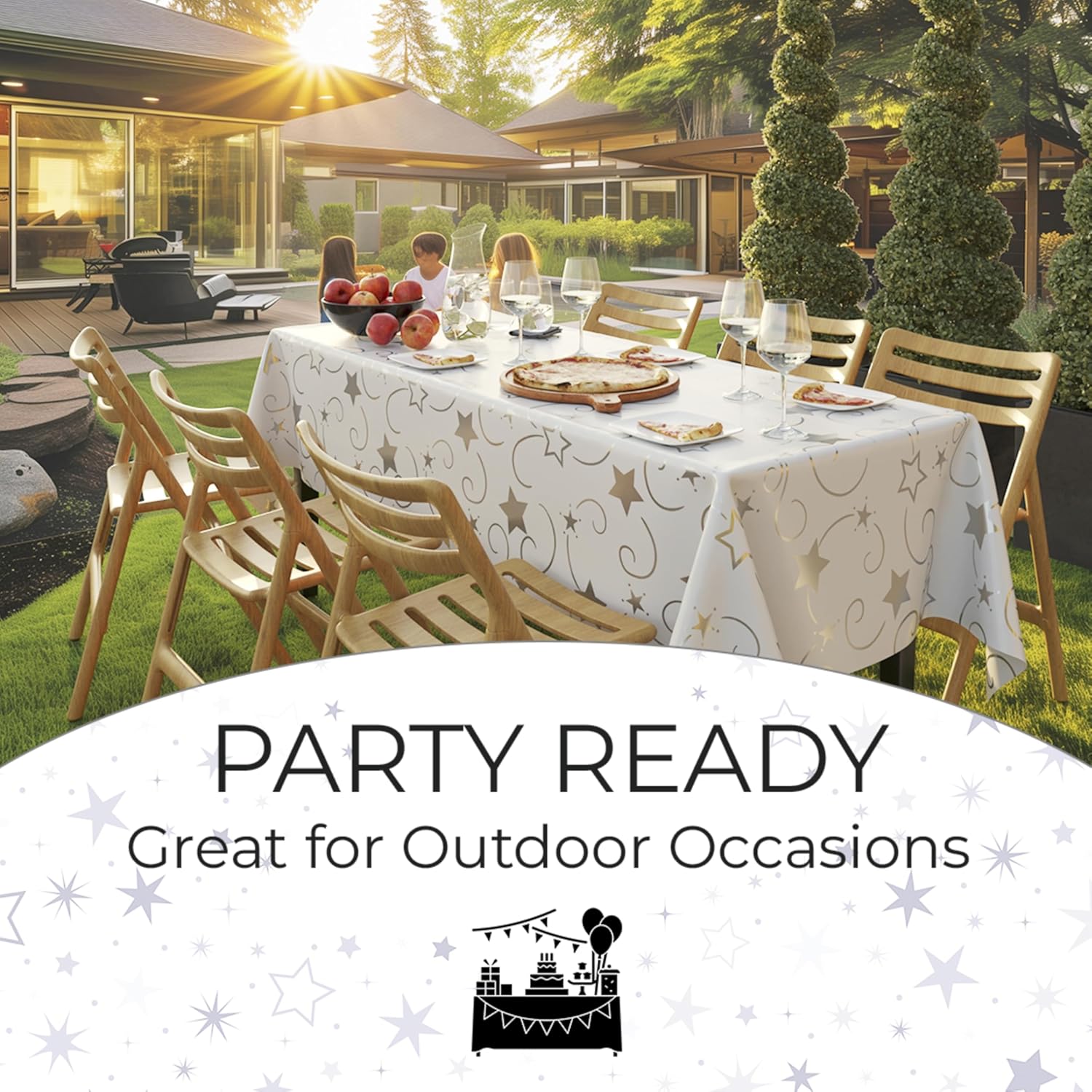 - Quality: Made from premium Tablecloth Plastic, these Rectangle Tablecloths Plastic are waterproof, durable, and spill-resistant. Use these Plastic Table Covers for worry-free protection. These Silver Star table cloths for parties are great for indoor or outdoor events, ensuring your tables stay mess-free and stylish.