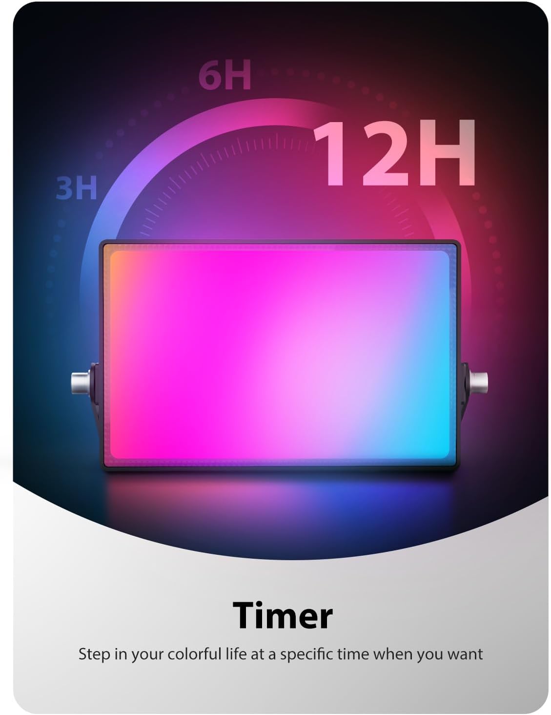 - Efficient Cooling: Die-cast aluminum housing and efficient cooling design makes it more durable and reliable; The scientific heat dissipation design and the special design on the back of the RGB floodlight make the work heat dissipation effect very superior; So that the floodlight work more longevity, stability and high efficiency
