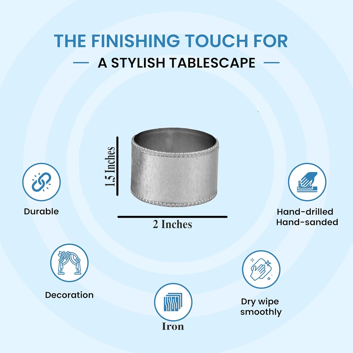 Silver Napkin Rings-12-Piece Set of Premium 100% Metal Rust-Resistant Décor - Handcrafted French-Style Metal Holders 2" for Thanksgiving, Christmas, Parties & Everyday Dining - ALPHA Living HOME