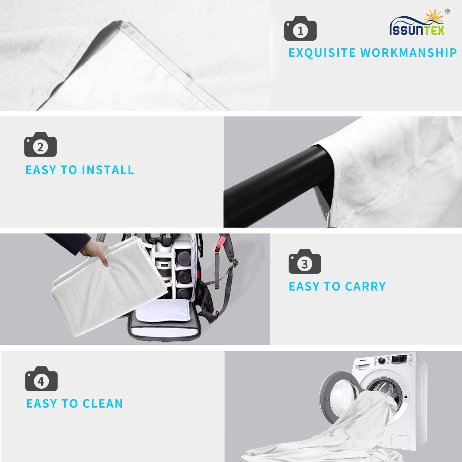 ISSUNTEX 10X12 ft Background Muslin Backdrop, Photo Studio, Collapsible High Density Screen for Video Photography and Television-White