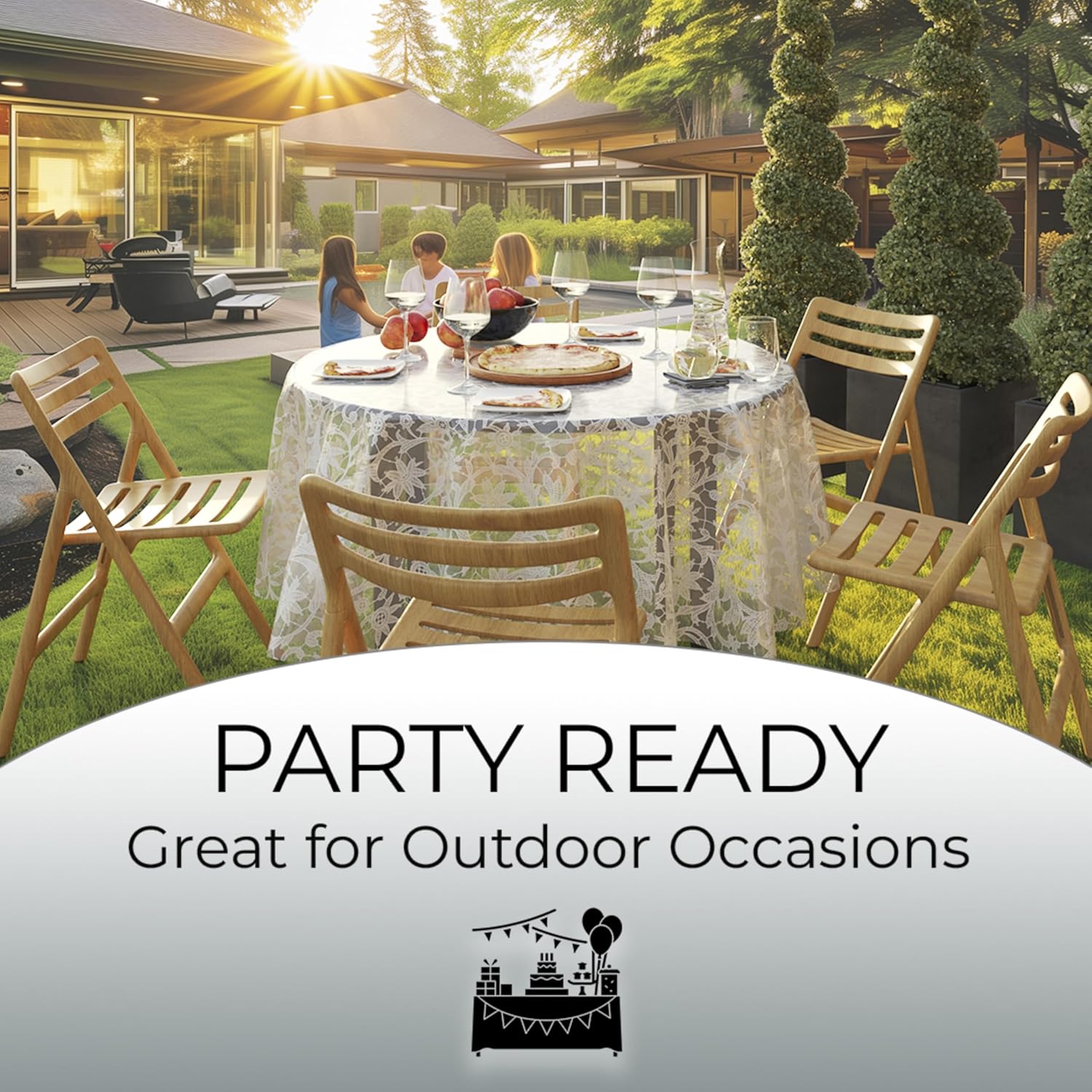- All Occasions: Whether it's a picnic, party, or holiday gathering, these lace table cloth round table covers are versatile enough for any event. Being the standard size of 8 ft table cloth round table they make a great use as a picnic table cover, outdoor table cover for parties, or elegant outdoor table clothes to elevate any occasion effortlessly.