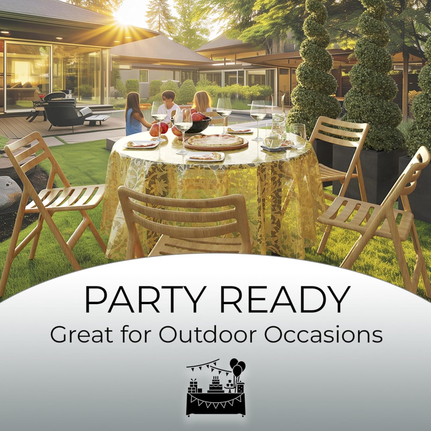 Exquisite Lace Table Cloth Round Table Plastic 12-Pack Lace Tablecloth Round 84" | Clear & Gold Floral Tablecloth Disposable | Wild Flower Party Decorations & Party Supplies