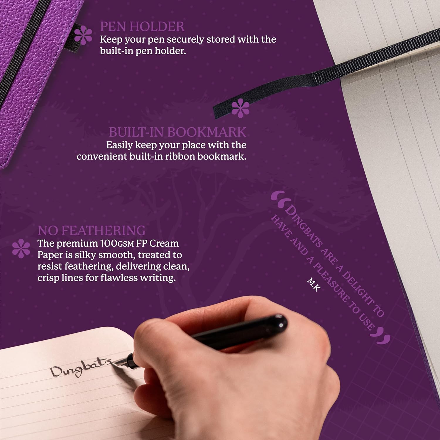 Dingbats* Wildlife Grid Writing Journal Notebook A5 - Vegan Leather Hardcover - Ideal for Work, Travel - Pocket, Elastic Closure, & Bookmark