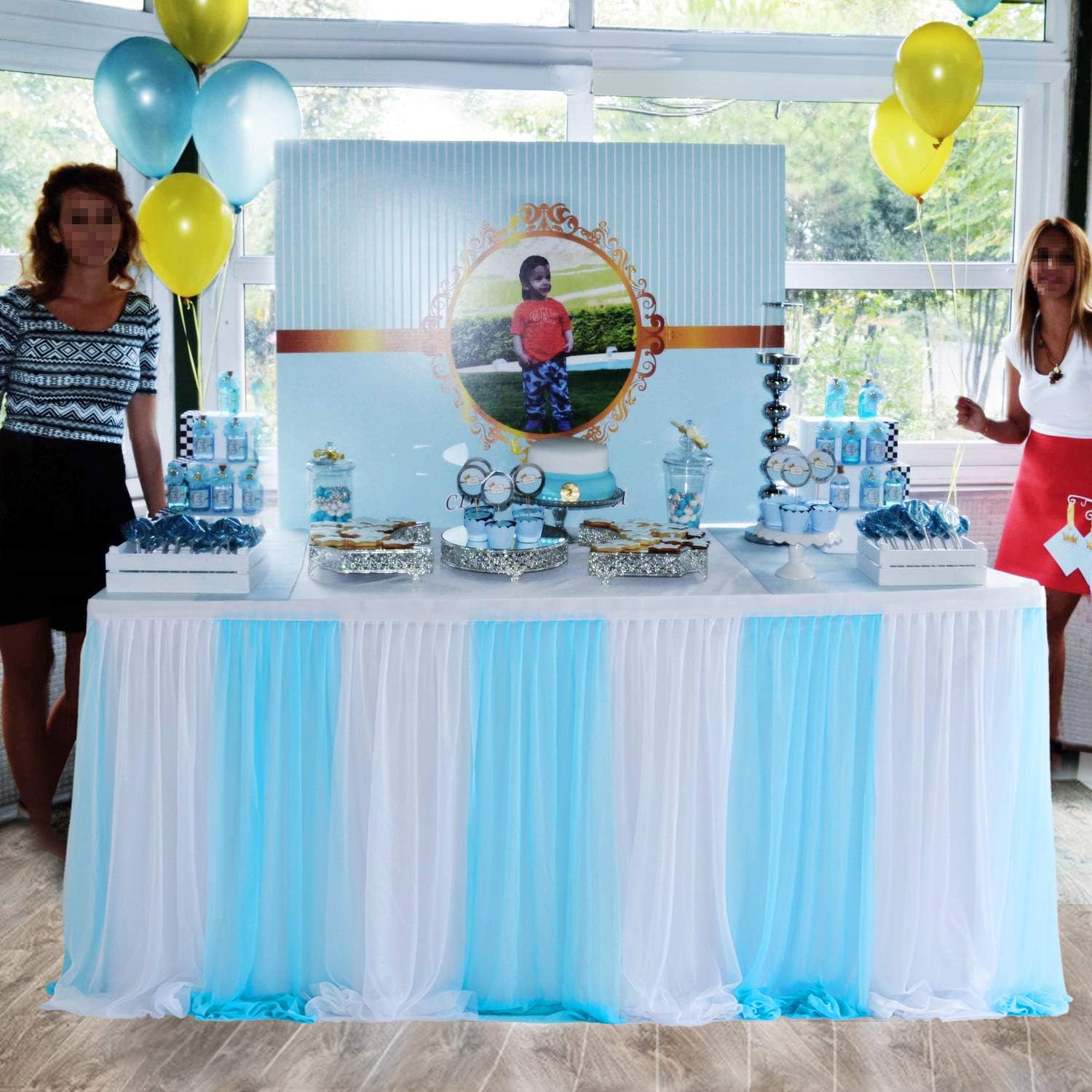 Suppromo Baby Blue Tulle Table Skirt for Rectangle Tables 9ft Tutu Tablecloth for Baby Shower Boy Birthday Party Cake Dessert Buffet Banquet Table Decorations