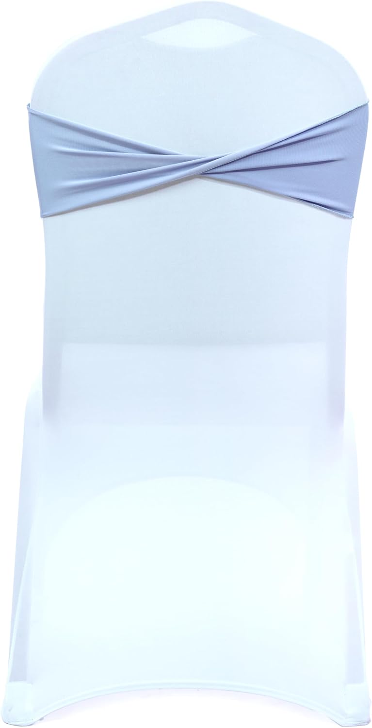 MDS Pack of 200 Spandex Chair Sashes Bows Elastic Stretch Dining Chair Bands Ties Without Slider Buckle Universal fits for Wedding Baby Shower Birthday Party Banquet Event Decoration - Baby Blue