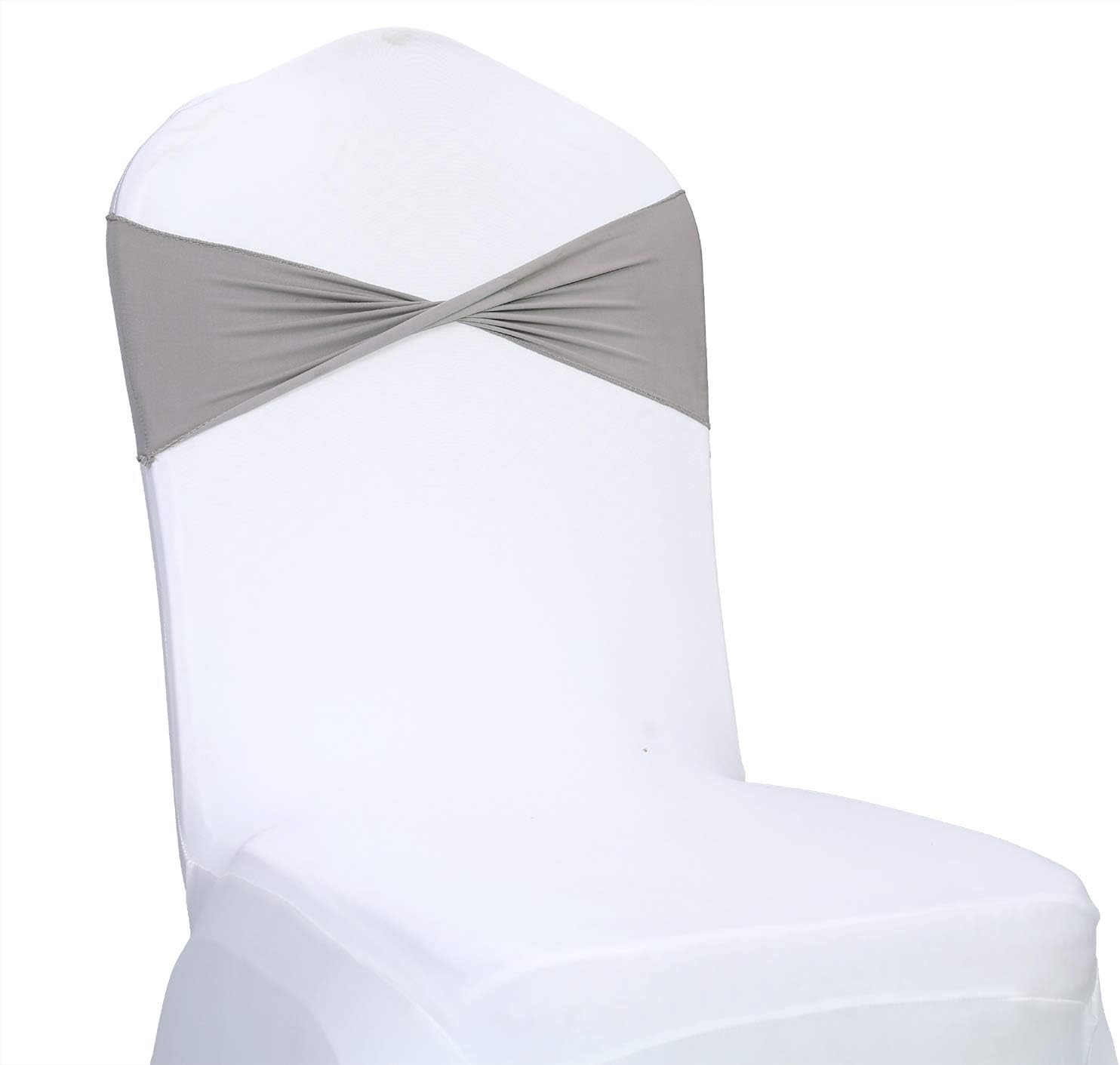 VDS Pack of 25 PCS | Silver Grey | Spandex Chair Sashes Bows Without Buckle | Stretch Elastic Banquet Universal Folding Chair Band Tie with for Wedding Party Conference Celebration Event Decoration