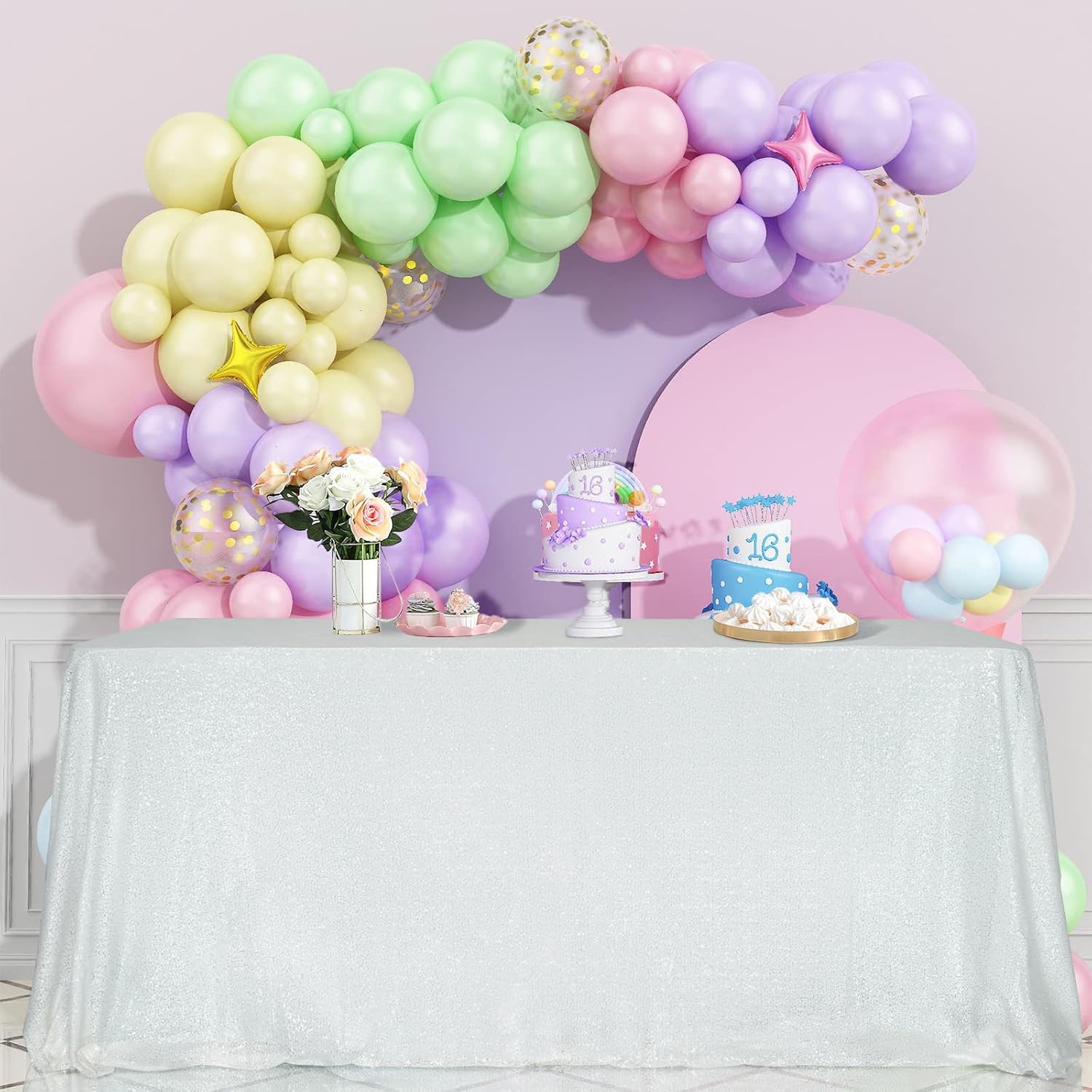 SquarePie Sequin Tablecloth 90 x 132 Inch White Sparkly Table Cloth for Wedding Party