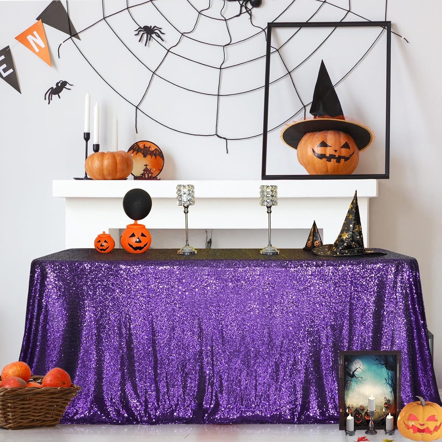 SquarePie Sequin Tablecloth 60 x 102 Inch Purple Sparkly Table Cloth for Halloween Wedding Party