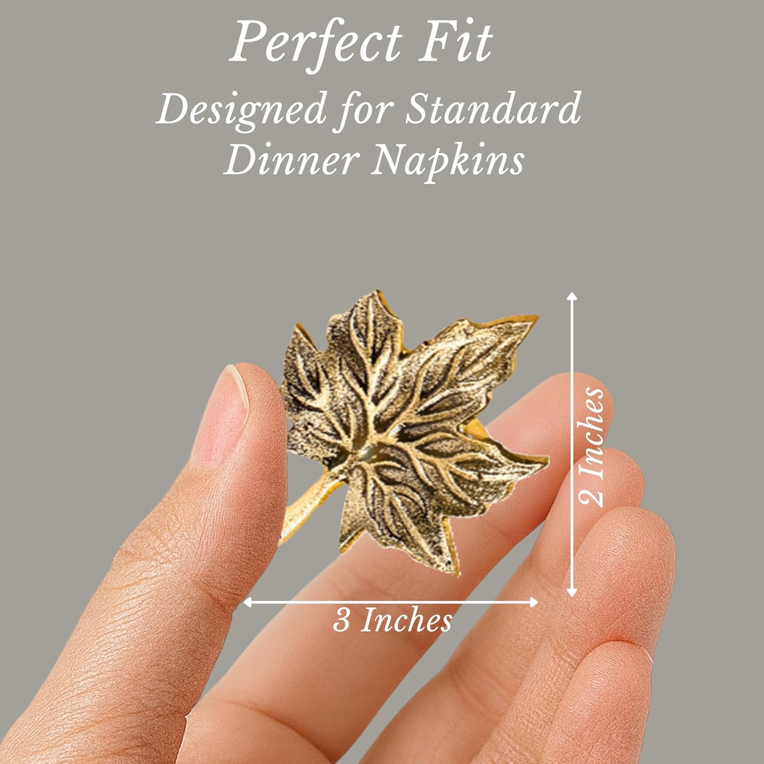 - ✔️ SET OF 12 - MIXED LEAF DESIGNS IN PERFECT SIZE: Each gold leaf napkin ring measures approx. 2.5" wide x 3" high, ideal for standard dinner napkins. Includes 12 uniquely crafted rings in assorted maple, holly, and birch leaf styles, bringing charm and variety to every table setting.