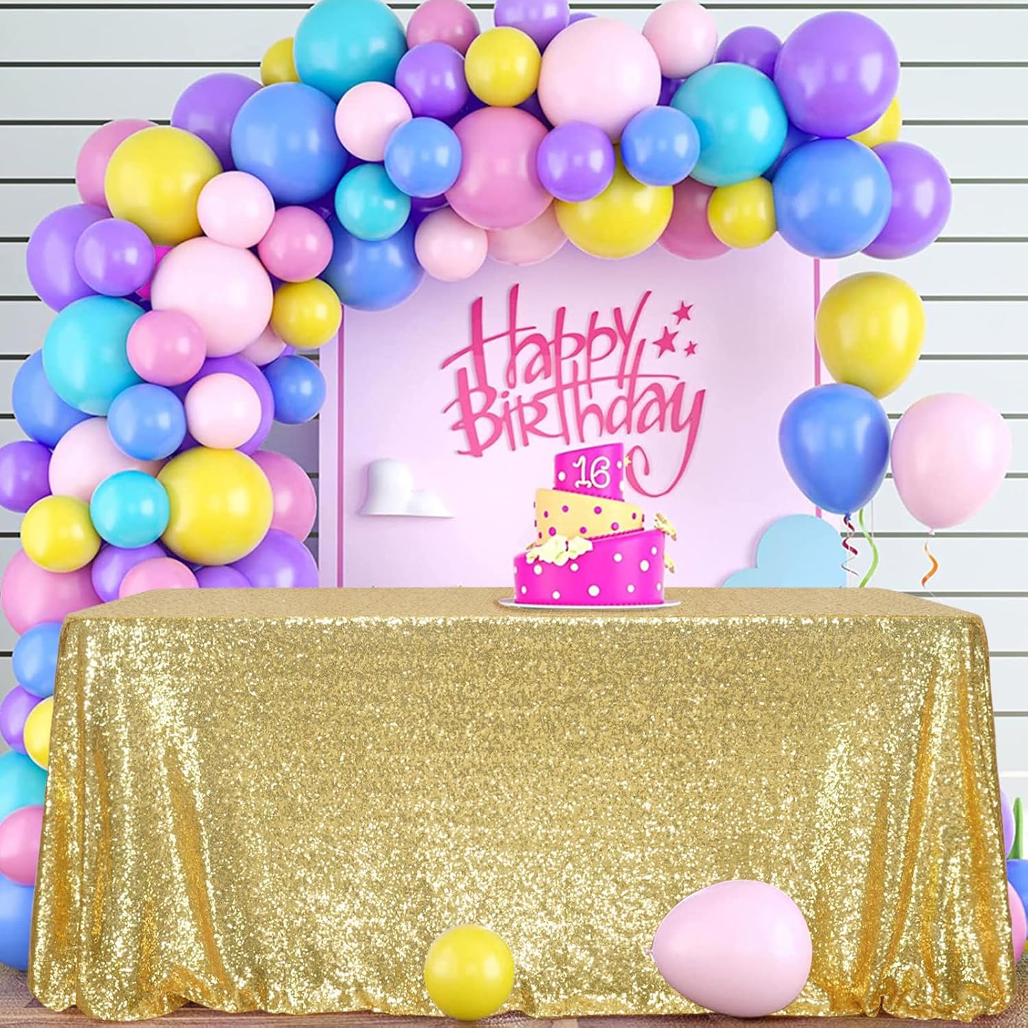 SquarePie Sequin Tablecloth 90 x 132 Inch Gold Sparkly Table Cloth for Wedding Party
