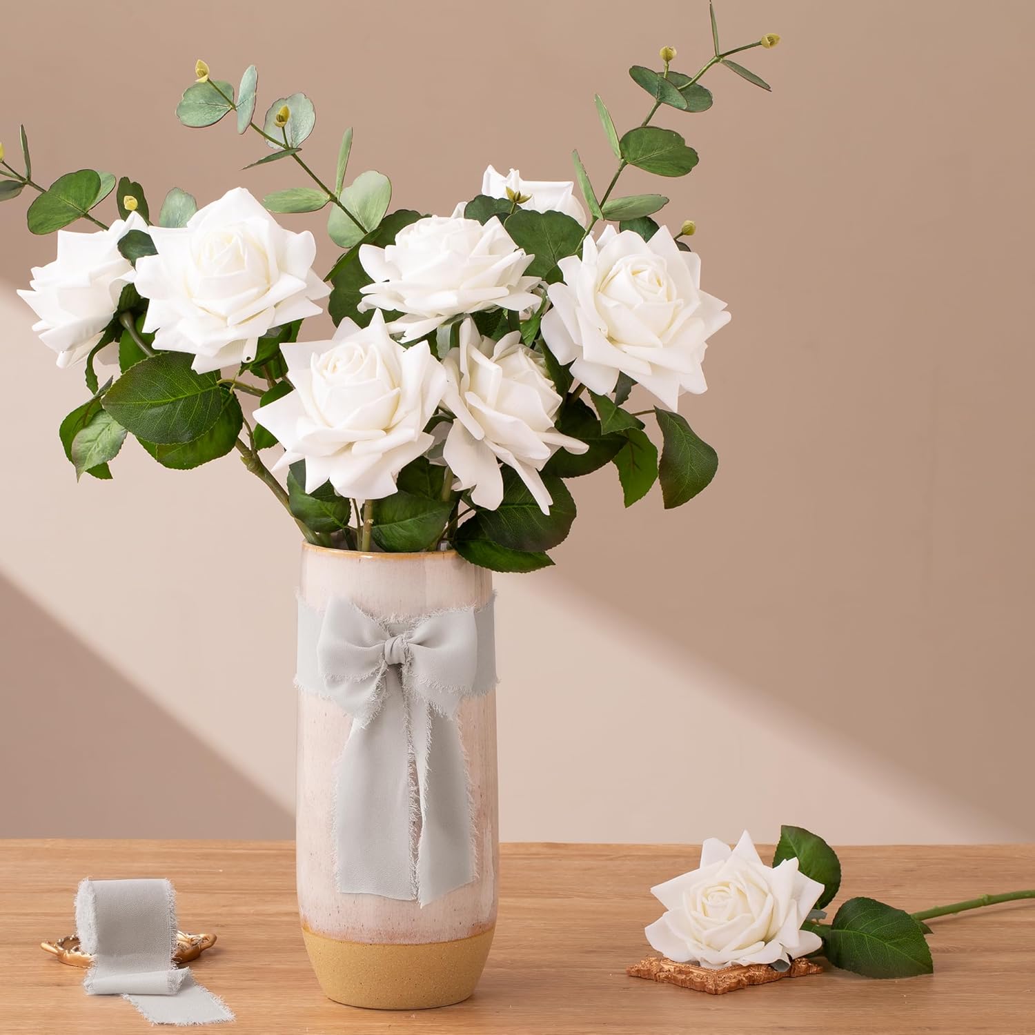 - 【Size and Color】Each roll of chiffon ribbon is 2 inches wide and 7 yards long, perfect for various creative uses such as making bows, decorating wreaths, and DIY crafts. This set includes 3 rolls light grey ribbons. These vibrant frayed ribbons add a rustic charm to your creations, ideal for bouquet wrap or gift ribbon.