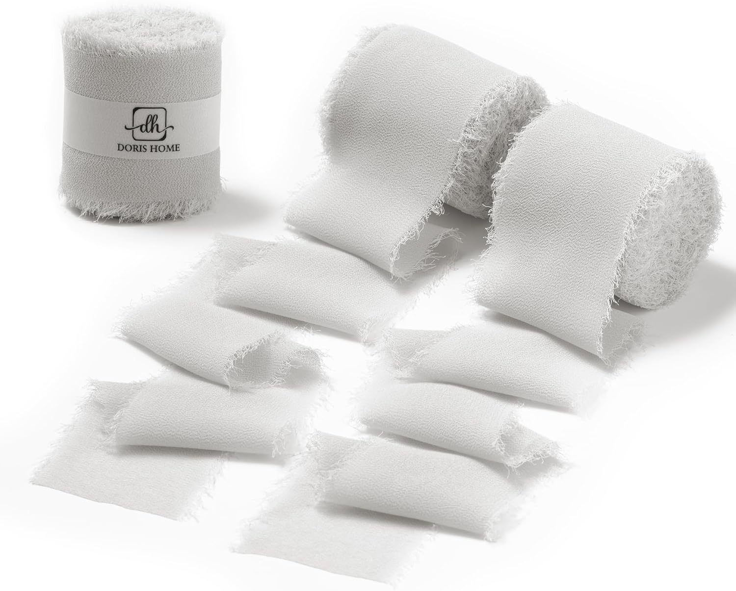 DORIS HOME Light Grey Chiffon Ribbon for Flower Bouquet, 2" x21Yd Fabric Ribbon for Gift Wrapping, Handmade Frayed Ribbon for Wedding, Chiffon Silk Ribbon for Christmas Decorations