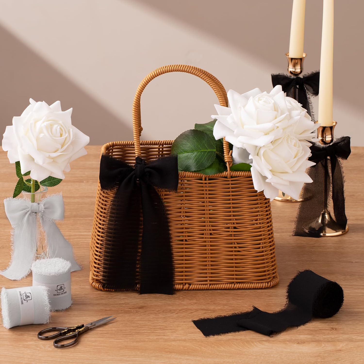 - 【Multiple Applications】This chiffon silk ribbon is great for gift wrapping, wedding decorations, wedding invitations, birthday parties, holiday celebrations, bridal showers, newborn photography props, wedding aisle backgrounds, boutonnieres, flower girl baskets, bouquet wrapping ribbons, Easter baskets, and even Christmas gift wrapping. Its elegant appearance makes it an ideal choice for bohemian or rustic DIY projects.