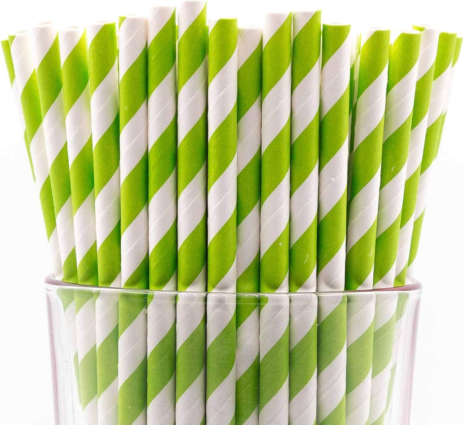 - Pack of 300 Green Swirls paper straws that are 7.75” long and have a diameter of 0.25”. Made with 4-ply paper which translates into thicker and more resilient straws that won’t wilt or change shape in both hot and cold drinks.