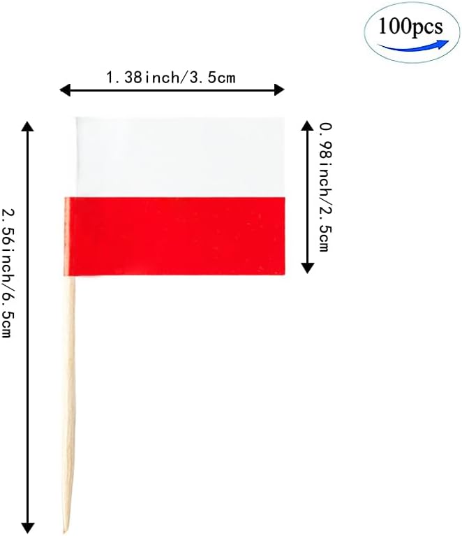 - Perfect Size for Food Decoration: This mini poland flag on stick measures 1.4 x 1 inches, with 2.5-inch stick – the ideal size for decorating appetizers, cupcakes, cakes, and snacks during patriotic events.