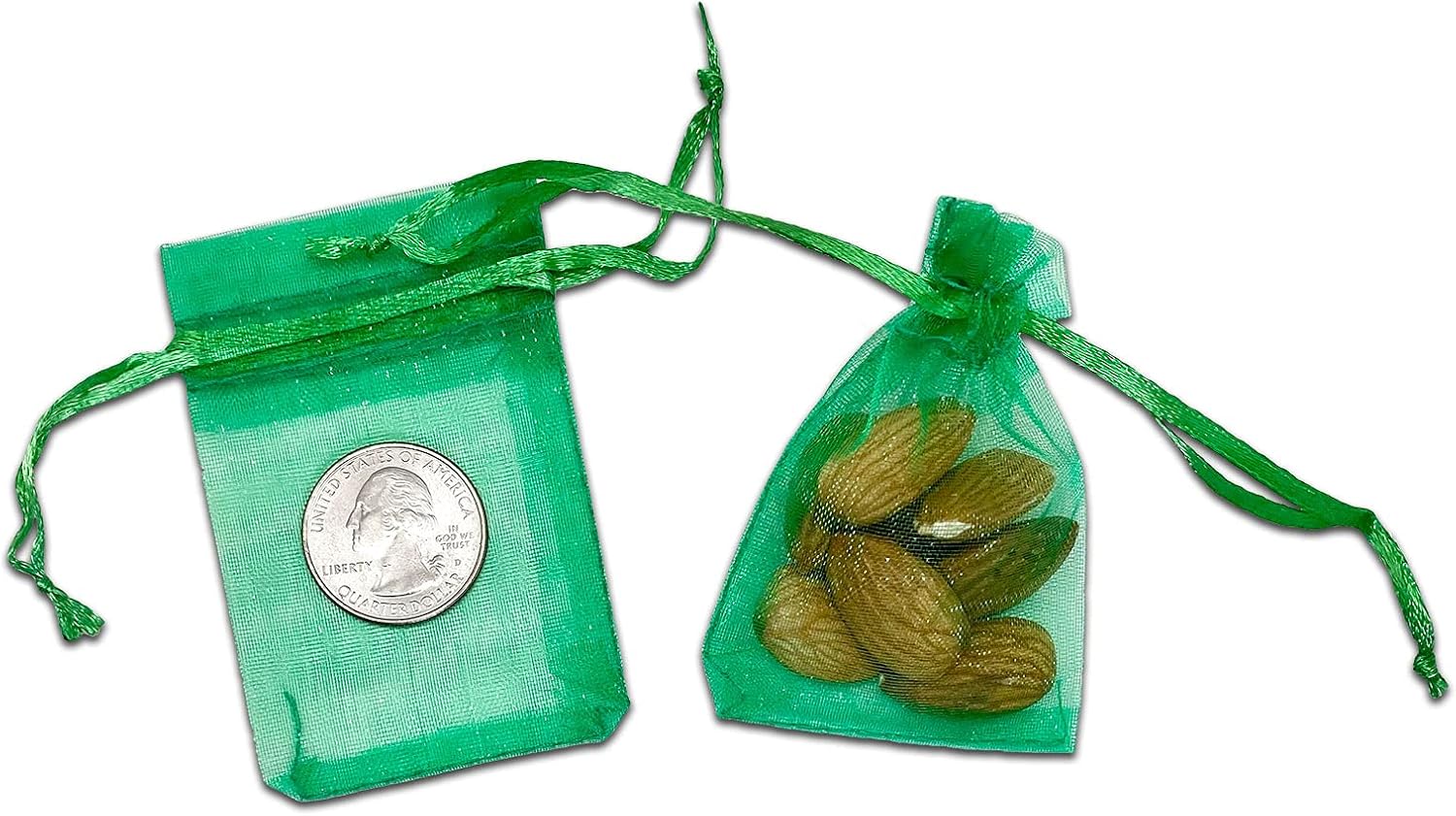TheDisplayGuys 100-Pack XS 2 x 2 3/4" Light Green Sheer Organza Gift Bags with Drawstring, Goodie Bags for Jewelry, Candy Bags, Treat Bags, Wedding Favors Small Mesh Bags