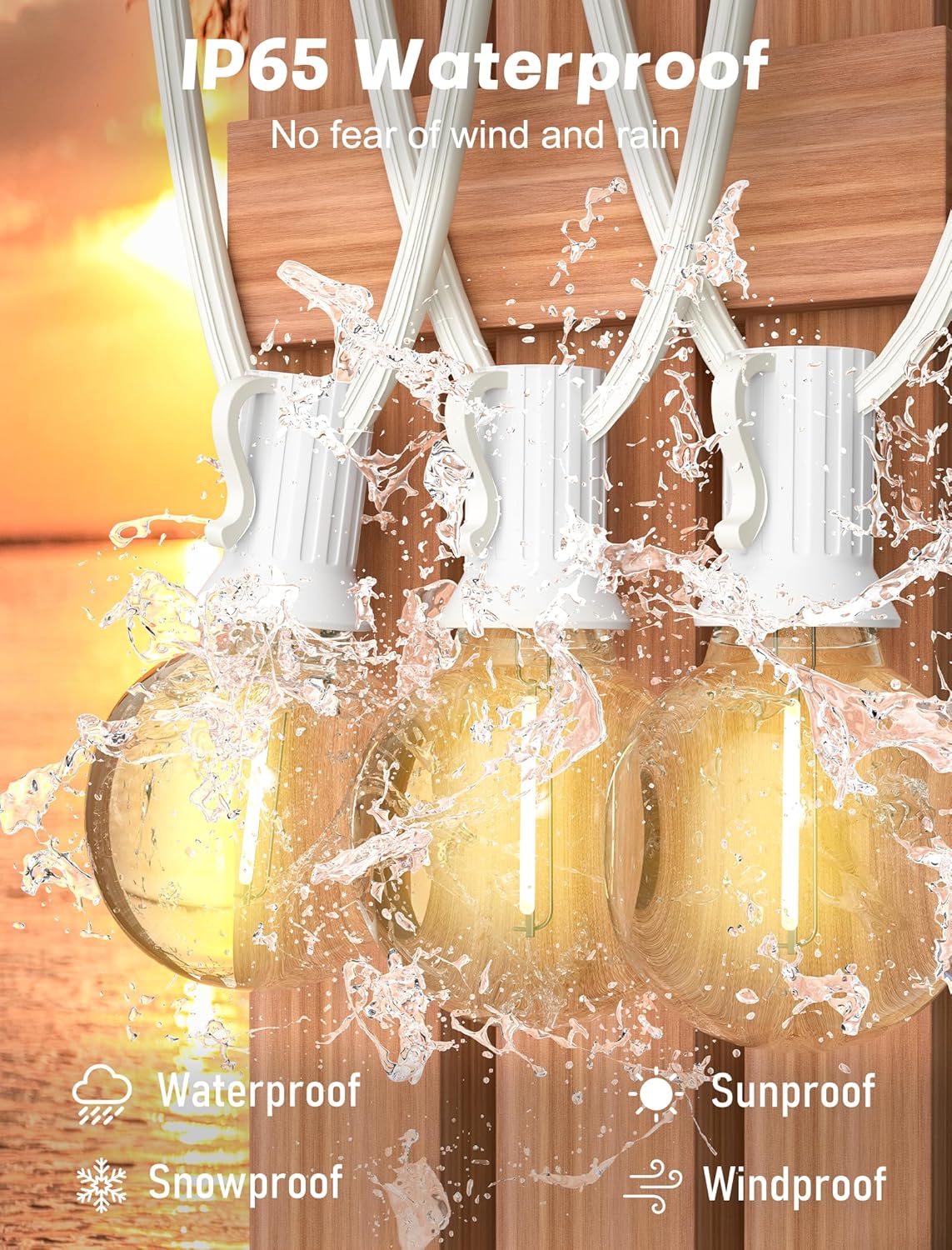 - Connectable String Lights: The G40 LED outdoor patio lights is designed with end-to-end connections, you can connect 28 strands at most to cover a large area. Rating of IP44, Commercial grade high quality are perfect for permanent outdoor lighting. waterproof, shatterproof and UL certified.shatterproof outdoor string lights can withstand extreme temperatures, rain, wind or wet weather. Unlike traditional ropes, they are more durable and can be used indoors and outdoors in all seasons for many years