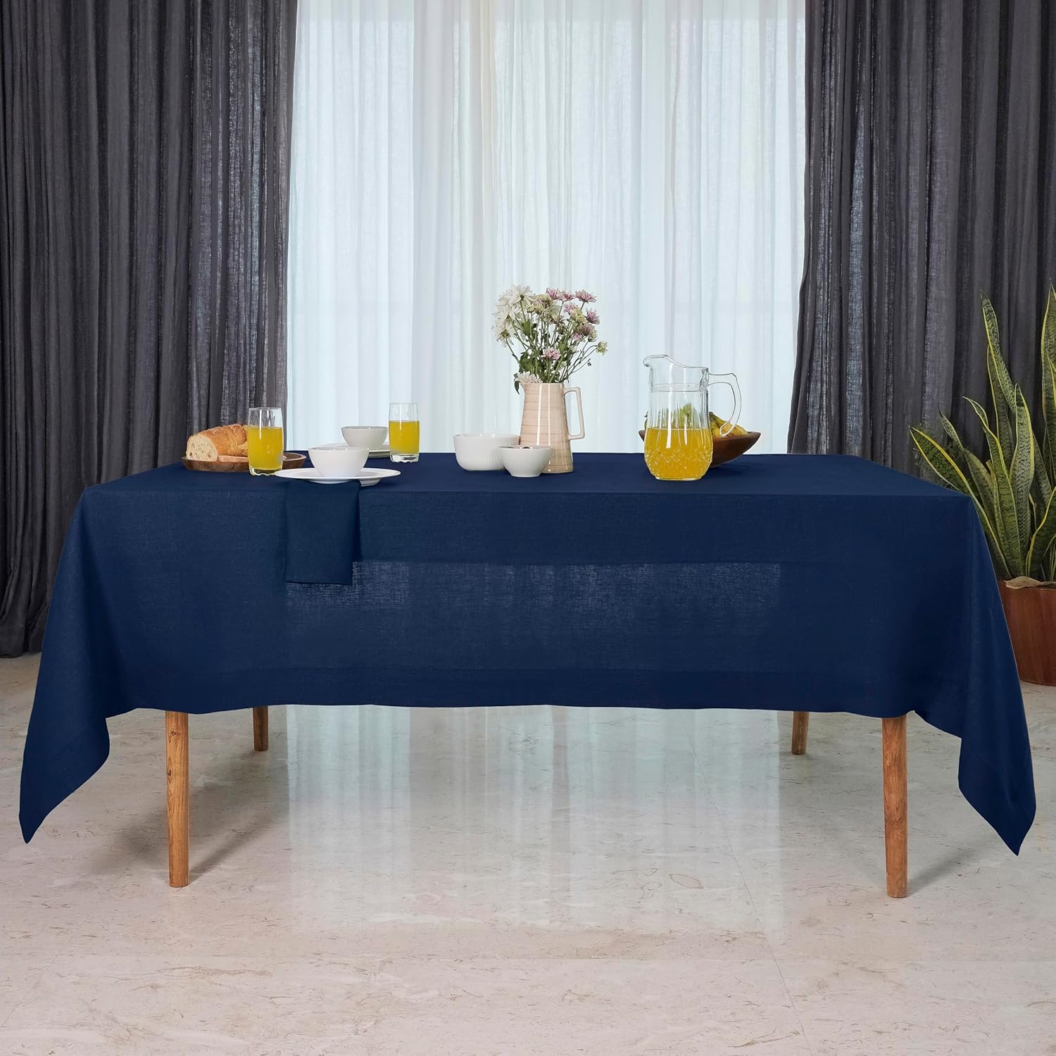 - PREMIUM EUROPEAN LINEN - This navy blue tablecloth is made from 100% European flax linen, not blended with cheaper materials like cotton or polyester. Pure linen is an exceptionally durable midweight, hypoallergenic (good for people with allergies) fabric which outperforms cotton in tensile strength and abrasion resistance.