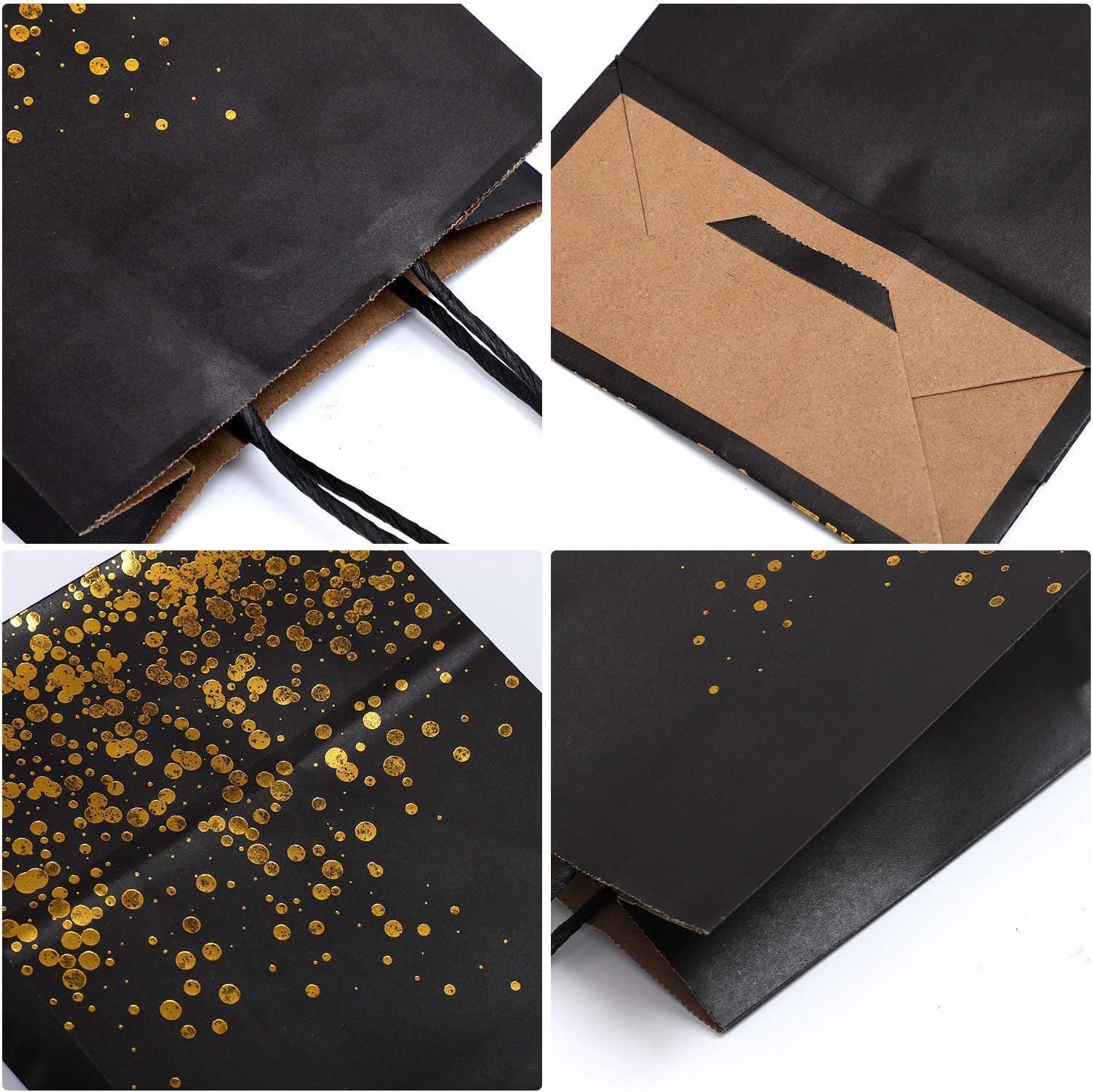- Style: black paper bag is printed with gold dots of different sizes,with the classic color, the bag is versatile, good-looking and practical, the bag is more shiny under the light, can catch people's eyes and add atmosphere to the party