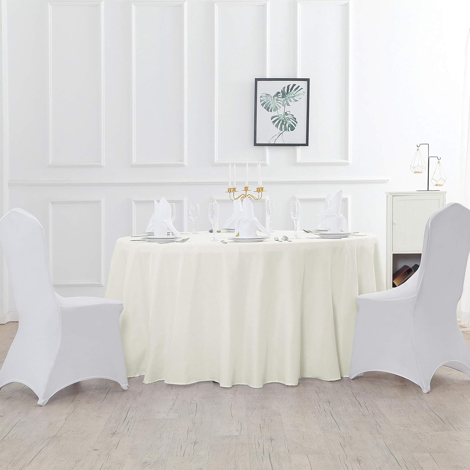120 inch Round Tablecloth Washable Polyester Table Cloth Decorative Table Cover for Wedding Party Dining Banquet(120 inch,Ivory)