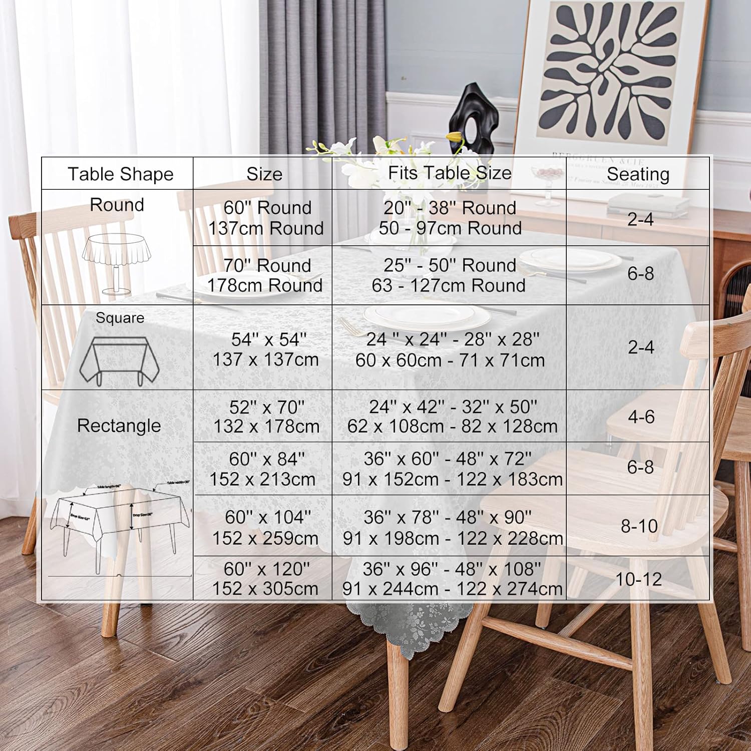 - [Elegant Vinyl Tablecloth] Featuring floral embossed tablecloth with pretty scalloped edges, nice warm tone and soft touch add an elegant touch to these tablecloths, they are suited for light up your fancy dinner.