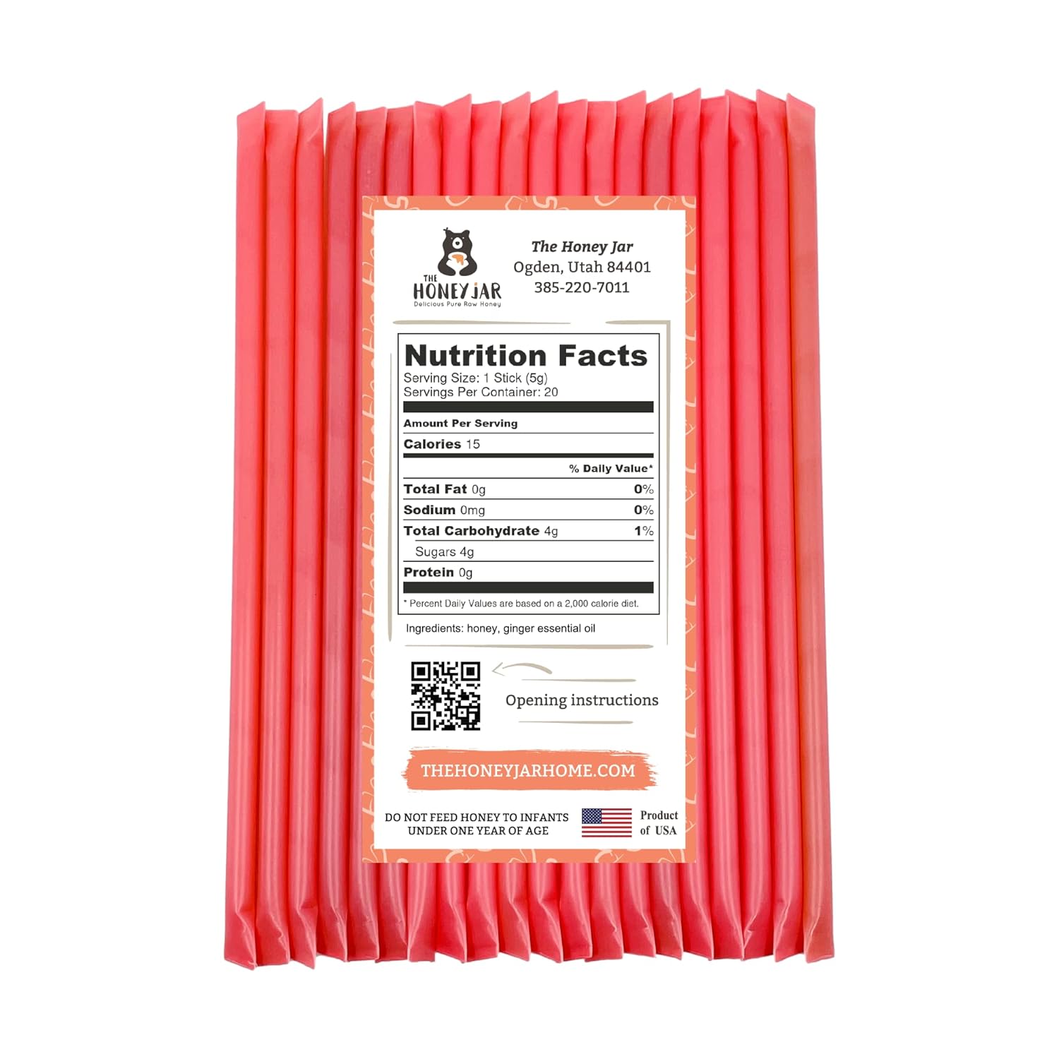 The Honey Jar Ginger Flavored Honey Sticks - Pure Honey Straws For Tea, Coffee, or a Healthy Treat - One Teaspoon of Flavored Honey Per Stick - Made In The USA with Real Honey - (20 Count)