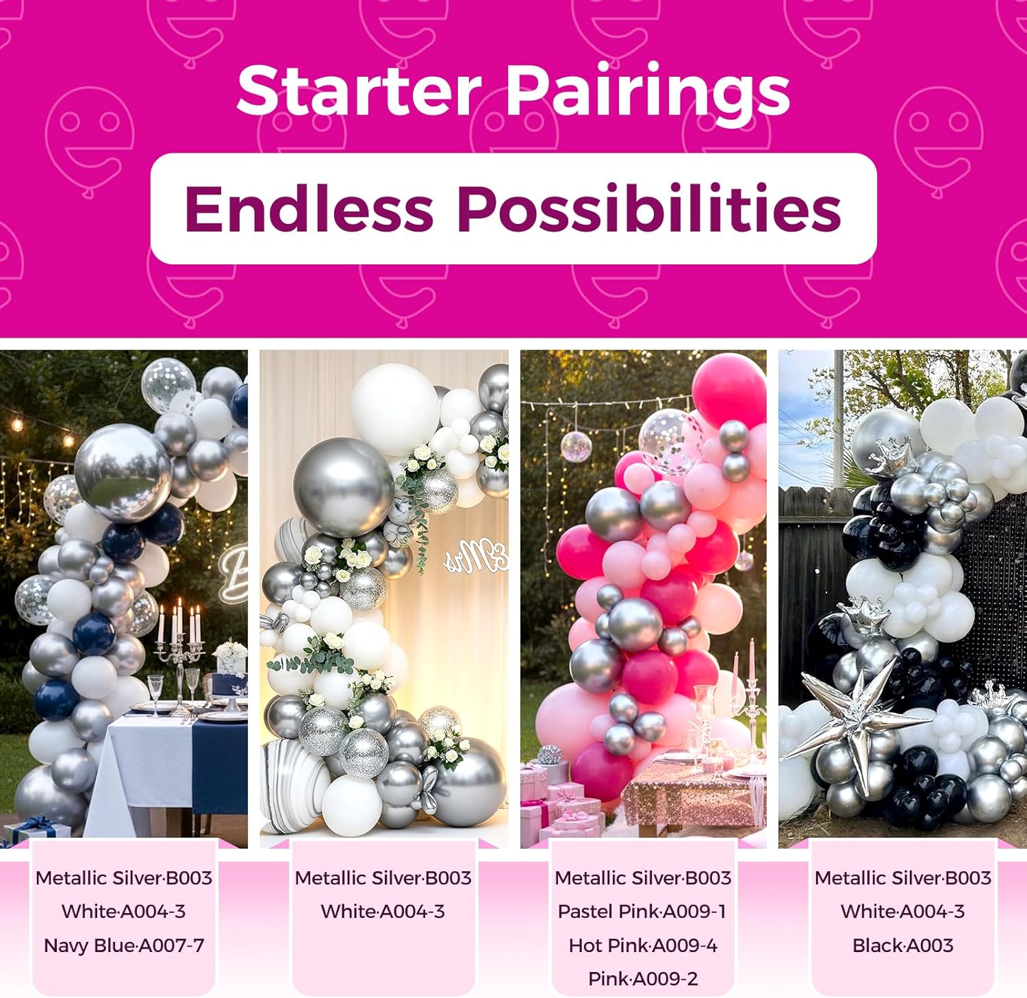 - 【Set Includes】- Each sets contains 100pcs silver party balloons of 12 inches and 1pcs silver ribbon (33 feet total).The right amount quantity and most suitable color for each party decoration.