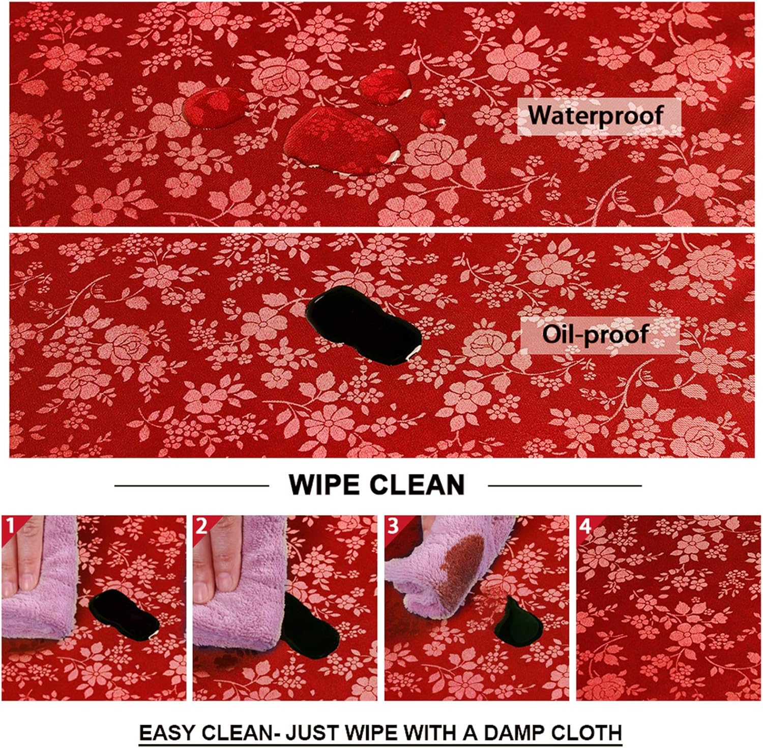 - [Easy Cleaning] The surface of the Smiry tablecloth is impervious to water and spills, allowing you to effortlessly wipe away liquids with a damp cloth or napkin. For thorough cleaning, simply toss it in the washing machine with cold water and then dry it on a gentle cycle or under the shade.