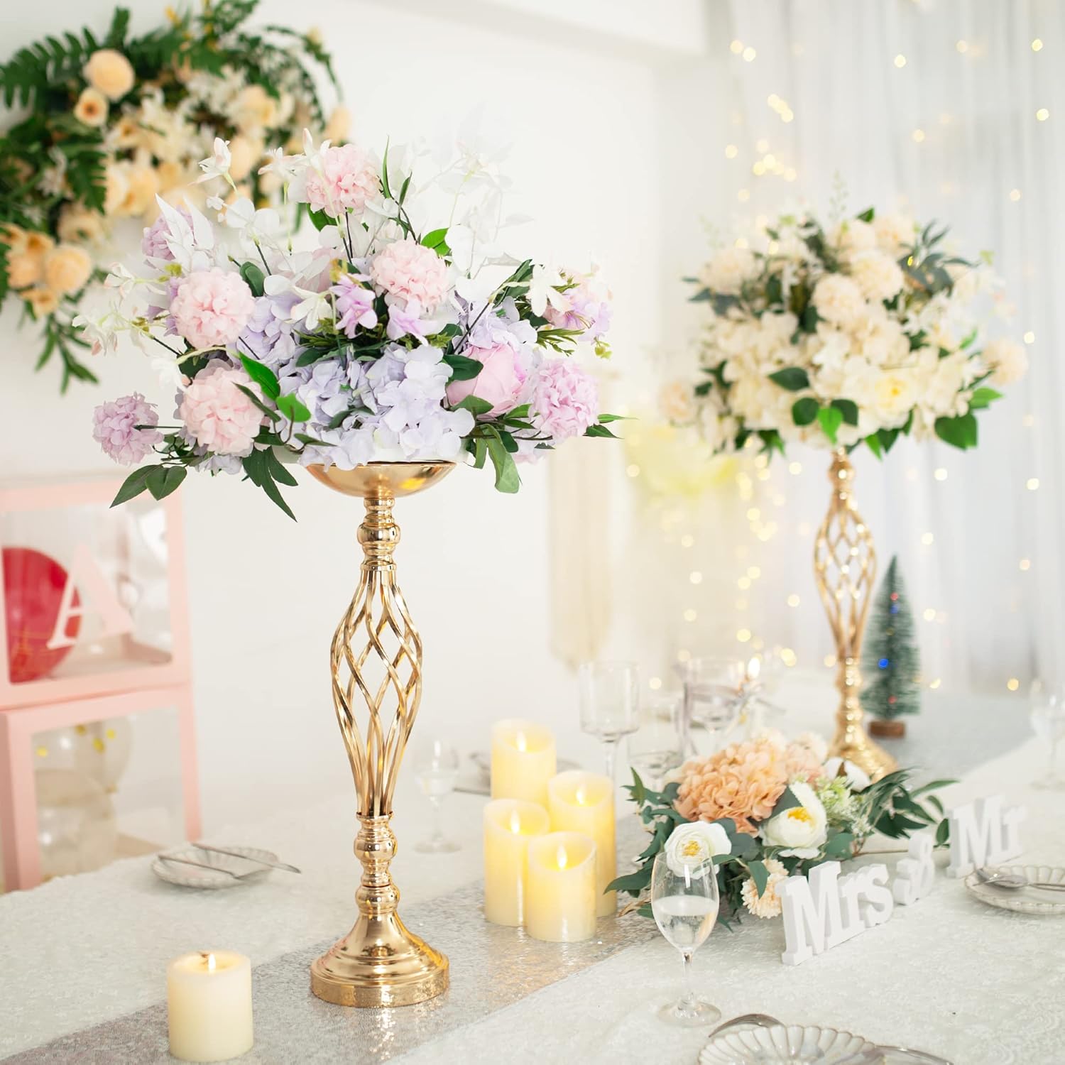 - PACKAGE INCLUDES: 2 pcs of gold wedding centerpieces. These centerpieces are 52cm/20.47" high. Their base is 14cm/5.51" wide, and the top opening diameter is 15cm/5.91".