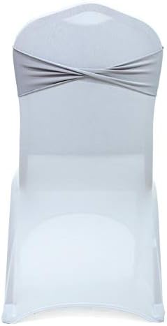 VDS Pack of 100 PCS | Light Silver | Spandex Chair Sashes Bows Without Buckle | Stretch Elastic Banquet Universal Folding Chair Band Tie with for Wedding Party Conference Celebration Event Decoration