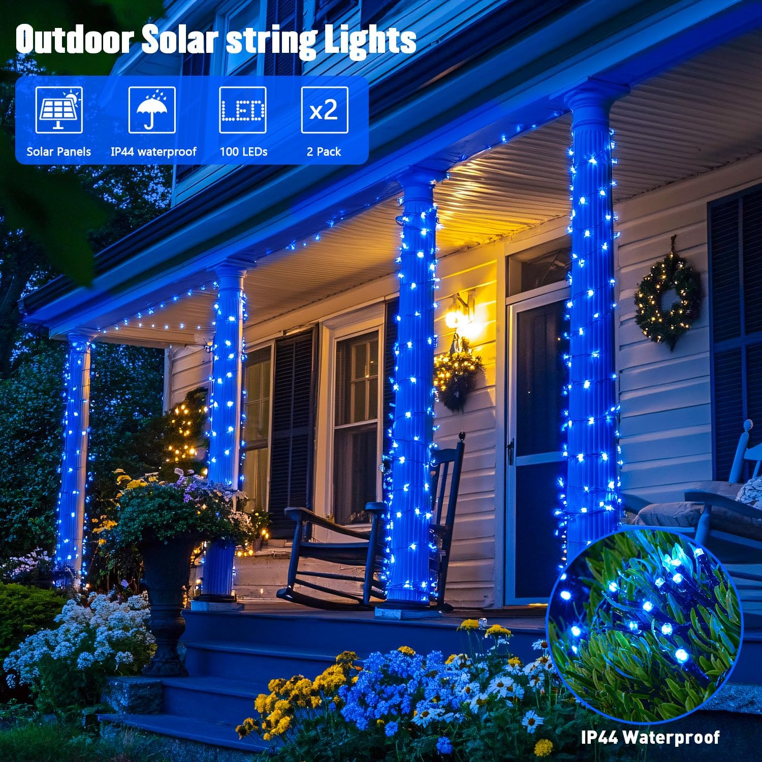 - Waterproof Solar Christmas Lights: 100 LED blue solar string lights are waterproof and can withstand rain and snow for indoor and outdoor use.