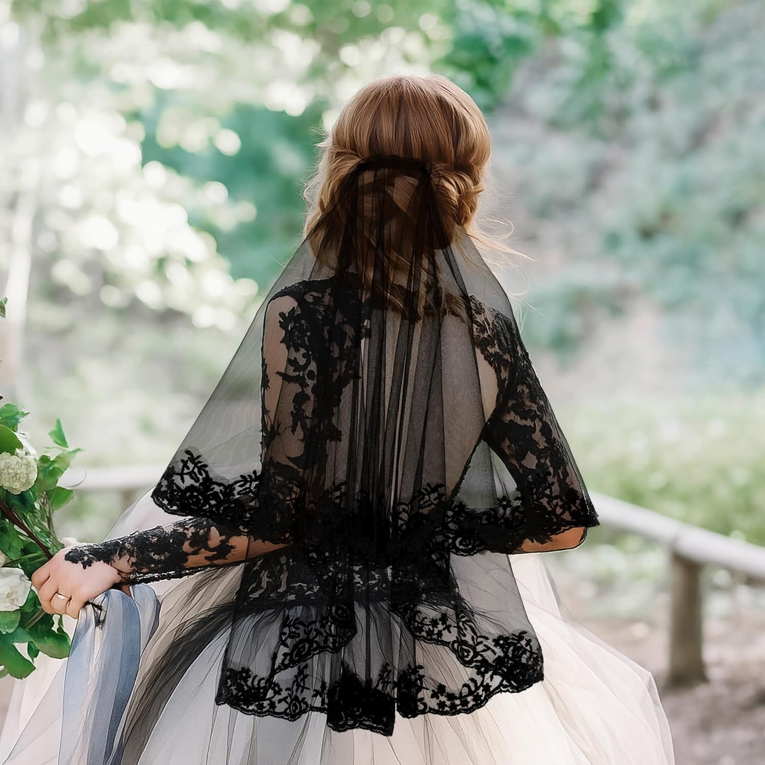 Ayliss Women Mesh Veils Black Bridal Birdcage Short Wedding Face Veil with Clip Tulle Gothic Bride Halloween Costume